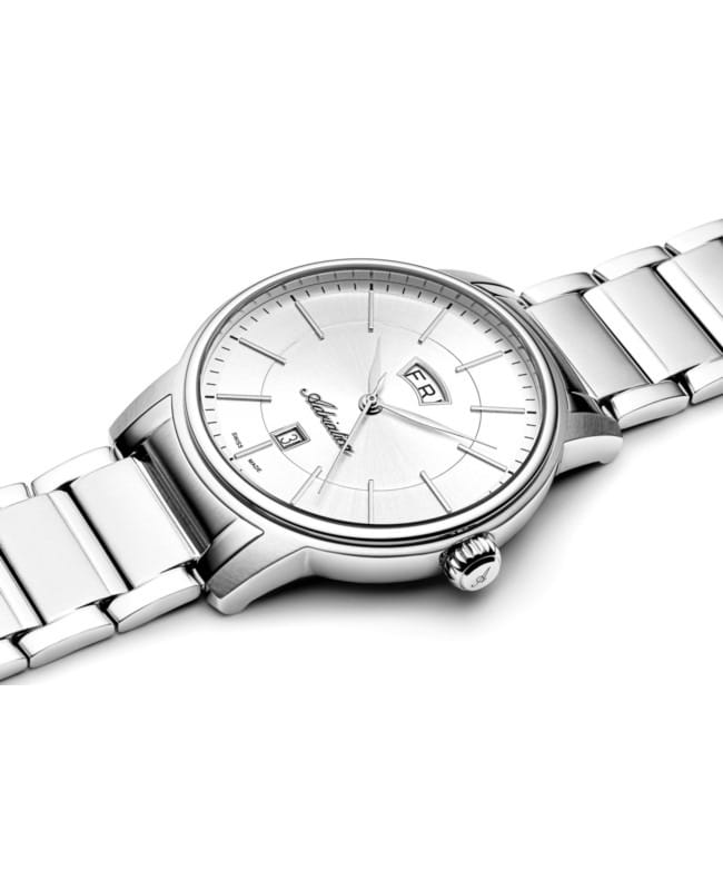 Часы Adriatica A1144.5113Q представляют собой идеальное сочетание элегантности и функциональности, разработанное для современных мужчин. Их стильный серебристый циферблат защищен сапфировым стекломСапфировое стеклоПрочный и надёжный материал из кристалла сапфира синтетического происхождения, характеризующийся особой твёрдостью и устойчивостью к царапинам и повреждениям., что придает дополнительную устойчивость к царапинам. Корпус из нержавеющей стали подчеркивает их изысканность и долговечность. Надежный кварцевый механизм с калибром RONDA 515 гарантирует точность времени, а водозащита WR 50 (5 ATM) обеспечивает защиту от воды в различных условиях. Браслет из нержавеющей стали с раскладной застёжкойРаскладная застёжкаТакой тип застёжки используется только на браслетах из металла. Она никогда не раскрывается полностью, происходит разделение на 2 и более частей. Раскладывающая застёжка снизит вероятность потери часов к минимуму., гармонично дополняет общий дизайн и обеспечивает комфортное ношение на запястье. Окошко даты находится в положении 6 часов. День недели отображается в положении 12 часов.