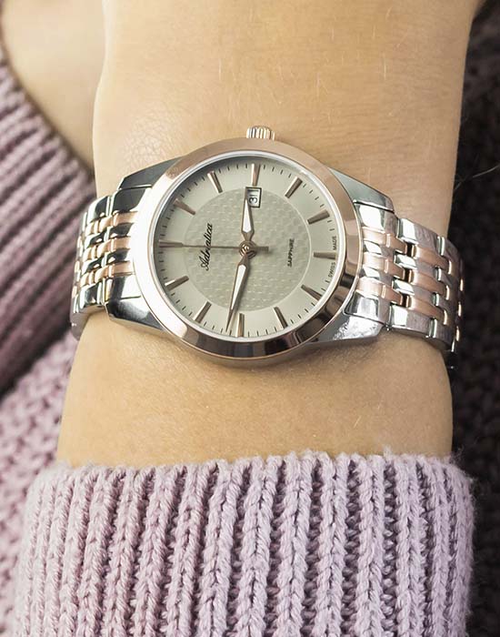 Часы Adriatica A3188.R117Q представляют собой сочетание швейцарской точности и изысканного дизайна. Эти часы из коллекции Premier созданы для тех, кто ценит утонченность и надежность. Корпус этих часов выполнен из нержавеющей стали, а безельБезельВнешний ободок, закрепляющий стекло. В спортивных часах так называется поворотное кольцо с делениями на циферблате, выполняет роль таймера – замеряет отрезки времени на шкале. Неподвижный безель – элемент декора. Однонаправленно вращающийся безель на дайверских часах позволяет фиксировать моменты погружения и выныривания на поверхность. с золотистым PVDPVDУльтратонкое покрытие наносится в технике вакуумного напыления, сочетает в себе нитрид титана особой прочности со слоем золота или оксида хрома. Несёт в себе декоративную или защитную функцию. покрытием, что придает изделию элегантность и долговечность. Сердцем часов является кварцевый механизм ETA F04, обеспечивающий высокую точность хода. Сапфировое стеклоСапфировое стеклоПрочный и надёжный материал из кристалла сапфира синтетического происхождения, характеризующийся особой твёрдостью и устойчивостью к царапинам и повреждениям. защищает изящный серебристый циферблат, а люминесцентное покрытиеЛюминесцентное покрытиеПозволяет считывать показания времени в темноте. Производители наносят на стрелки, часовые индексы, безель или поверхность циферблата светонакопительный состав, дающий холодное свечение. на стрелках облегчает чтение времени в условиях низкой освещенности. Часы обладают водозащитой до 5 ATM, что делает их устойчивыми к случайным воздействиям воды. Стальной браслет, выполненный из нержавеющей стали с частичным PVDPVDУльтратонкое покрытие наносится в технике вакуумного напыления, сочетает в себе нитрид титана особой прочности со слоем золота или оксида хрома. Несёт в себе декоративную или защитную функцию. покрытием, отличается комфортом и надежностью, а раскладная застёжкаРаскладная застёжкаТакой тип застёжки используется только на браслетах из металла. Она никогда не раскрывается полностью, происходит разделение на 2 и более частей. Раскладывающая застёжка снизит вероятность потери часов к минимуму. обеспечивает удобство ношения. Часы оснащены функцией отображения даты в окошке в положении 3 часа, что добавляет практичности в повседневной жизни.