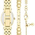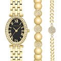 Женские американские наручные часы Anne Klein Box Set 3970GBST, кварцевый механизм с высокой точностью. Минеральное стеклоМинеральное стеклоМинеральное стекло представляет собой искусственно выращенный минерал кварца. Такое стекло отличается особой устойчивостью к повреждениям и царапинам. Уступает по некоторым качествам сапфировому стеклу., устойчивое к мелким механическим повреждениям. Класс водозащиты: 30 метров, позволит защитить корпус от случайных брызг или капель дождя. Корпус часов изготовлен из нержавеющей стали с IP-покрытиемIP-покрытиеМетод ионного напыления. Демонстрирует повышенную устойчивость к истиранию, окислению и химическим веществам. Под воздействием высокого давления и температуры около 1500°C молекулы металла надёжно соединяются с частицами корпуса часов.. Стальной браслет на ювелирной застёжке . В комплекте браслеты. БезельБезельВнешний ободок, закрепляющий стекло. В спортивных часах так называется поворотное кольцо с делениями на циферблате, выполняет роль таймера – замеряет отрезки времени на шкале. Неподвижный безель – элемент декора. Однонаправленно вращающийся безель на дайверских часах позволяет фиксировать моменты погружения и выныривания на поверхность. инкрустирован кристаллами.