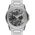 Мужские наручные часы с минеральным стекломМинеральное стеклоМинеральное стекло представляет собой искусственно выращенный минерал кварца. Такое стекло отличается особой устойчивостью к повреждениям и царапинам. Уступает по некоторым качествам сапфировому стеклу. Armani Exchange Banks AX1736, кварцевый механизм с высокой точностью. Класс водозащиты: 50 метров, позволит защитить корпус от случайных брызг или капель дождя. Корпус часов изготовлен из стали. Модель имеет серый циферблат с эффектом луны, серебряные часовую, минутную и секундную стрелки. Циферблат оснащен серебряными индексами в виде жезлов, а также дополнительными циферблатами фаз Луны, дня недели и даты. Стальной браслет на раскладной застёжкеРаскладная застёжкаТакой тип застёжки используется только на браслетах из металла. Она никогда не раскрывается полностью, происходит разделение на 2 и более частей. Раскладывающая застёжка снизит вероятность потери часов к минимуму..