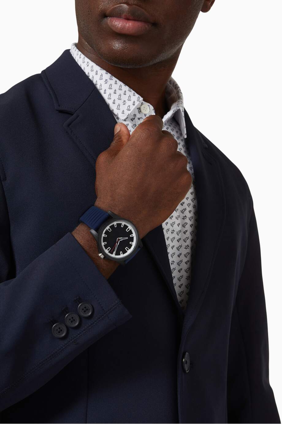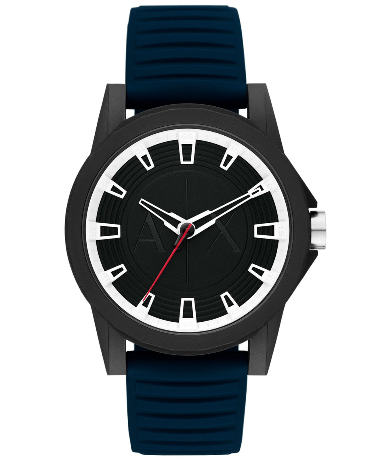 Мужские наручные часы с минеральным стекломМинеральное стеклоМинеральное стекло представляет собой искусственно выращенный минерал кварца. Такое стекло отличается особой устойчивостью к повреждениям и царапинам. Уступает по некоторым качествам сапфировому стеклу. Armani Exchange Outer Banks AX2521, кварцевый механизм с высокой точностью. Класс водозащиты: 30 метров, позволит защитить корпус от случайных брызг или капель дождя. Корпус часов изготовлен из пластика. Метки в виде штрихов. Заводная головка с защитой. Силиконовый ремешок с классической застежкой.