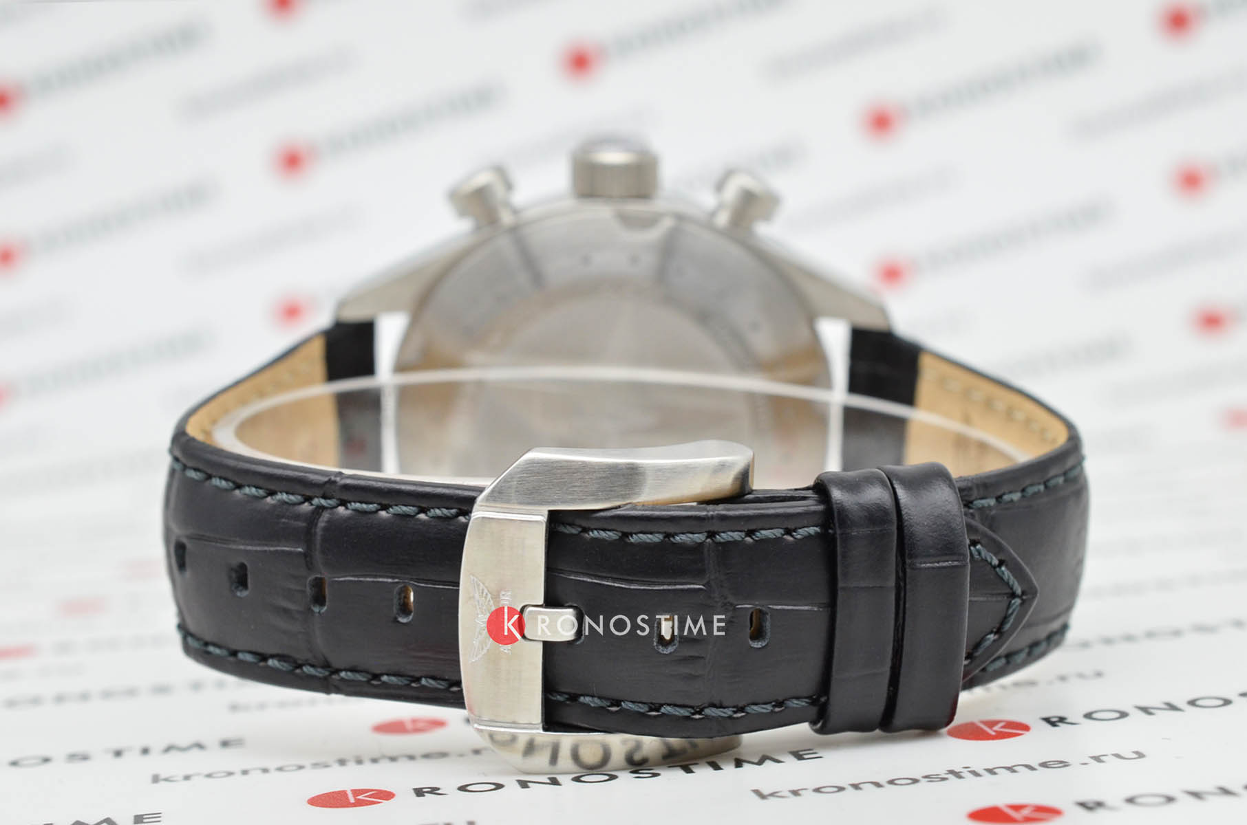 Aviator Airacobra V.2.25.0.169.4 — швейцарский GMT-хронограф в духе пилотских инструментов, объединяющий точность, удобство и лаконичный дизайн. Диаметр корпуса — 45 мм, выполнен из нержавеющей стали, что подчёркивает техническую надёжность в образе часов.