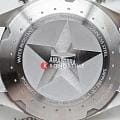 У модели присутствуют дата и точный откидной механизм завинчивающейся заводной головки и задней крышки, обеспечивающий надёжную водозащиту до 100 м и защиту от ударов — корпус обладает высокой ударопрочностьюУдаропрочный корпусМеханизм заключён в корпус, выполненный из современных материалов, устойчивых к ударам, механическим повреждениям и падению с высоты: инновационный пластик, карбон, нержавеющая сталь, титан..
