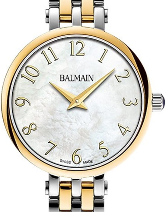 Женские часы Balmain Sedirea B4292.39.84 кварцевый механизм с высокой точностью. Сапфировое стеклоСапфировое стеклоПрочный и надёжный материал из кристалла сапфира синтетического происхождения, характеризующийся особой твёрдостью и устойчивостью к царапинам и повреждениям. устойчивое к появлению царапин, обладающее высокой прозрачностью. Корпус изготовлен из нержавеющей стали. Класс водозащиты: 50 метров, позволит защитить корпус от случайных брызг или капель дождя. Стальной браслет с PVD-покрытиемPVDУльтратонкое покрытие наносится в технике вакуумного напыления, сочетает в себе нитрид титана особой прочности со слоем золота или оксида хрома. Несёт в себе декоративную или защитную функцию.. на застёжке «бабочка» с кнопкамиЗастёжка "бабочка"Такой вид застёжки дополняется предохранителями, помогающими избежать случайного раскрытия браслета. Обладают изящным исполнением. . БезельБезельВнешний ободок, закрепляющий стекло. В спортивных часах так называется поворотное кольцо с делениями на циферблате, выполняет роль таймера – замеряет отрезки времени на шкале. Неподвижный безель – элемент декора. Однонаправленно вращающийся безель на дайверских часах позволяет фиксировать моменты погружения и выныривания на поверхность. с PVD-покрытиемPVDУльтратонкое покрытие наносится в технике вакуумного напыления, сочетает в себе нитрид титана особой прочности со слоем золота или оксида хрома. Несёт в себе декоративную или защитную функцию..