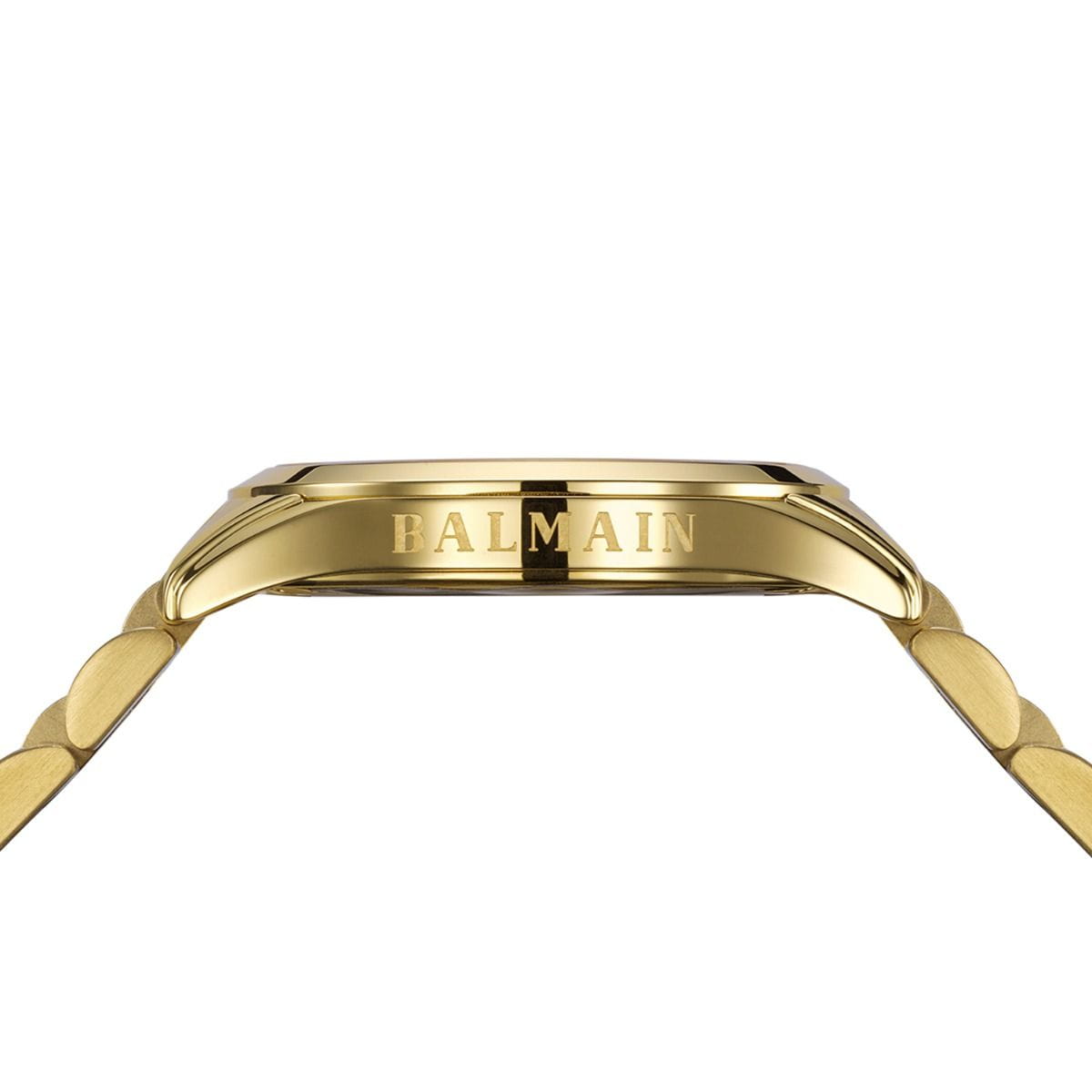 Женские часы Balmain Classic R B4310.31.82 кварцевый механизм с высокой точностью. Сапфировое стеклоСапфировое стеклоПрочный и надёжный материал из кристалла сапфира синтетического происхождения, характеризующийся особой твёрдостью и устойчивостью к царапинам и повреждениям. устойчивое к появлению царапин, обладающее высокой прозрачностью. Корпус изготовлен из нержавеющей стали PVD-покрытиемPVDУльтратонкое покрытие наносится в технике вакуумного напыления, сочетает в себе нитрид титана особой прочности со слоем золота или оксида хрома. Несёт в себе декоративную или защитную функцию.. Класс водозащиты: 50 метров, позволит защитить корпус от случайных брызг или капель дождя. Стальной браслет с PVD-покрытиемPVDУльтратонкое покрытие наносится в технике вакуумного напыления, сочетает в себе нитрид титана особой прочности со слоем золота или оксида хрома. Несёт в себе декоративную или защитную функцию.. на застёжке «бабочка» с кнопкамиЗастёжка "бабочка"Такой вид застёжки дополняется предохранителями, помогающими избежать случайного раскрытия браслета. Обладают изящным исполнением. . БезельБезельВнешний ободок, закрепляющий стекло. В спортивных часах так называется поворотное кольцо с делениями на циферблате, выполняет роль таймера – замеряет отрезки времени на шкале. Неподвижный безель – элемент декора. Однонаправленно вращающийся безель на дайверских часах позволяет фиксировать моменты погружения и выныривания на поверхность. с PVD-покрытиемPVDУльтратонкое покрытие наносится в технике вакуумного напыления, сочетает в себе нитрид титана особой прочности со слоем золота или оксида хрома. Несёт в себе декоративную или защитную функцию.. Календарь в положении 6 часов. Циферблат с 8 бриллиантами группы Top Wesselton VS-SI общим весом 0.030 карата