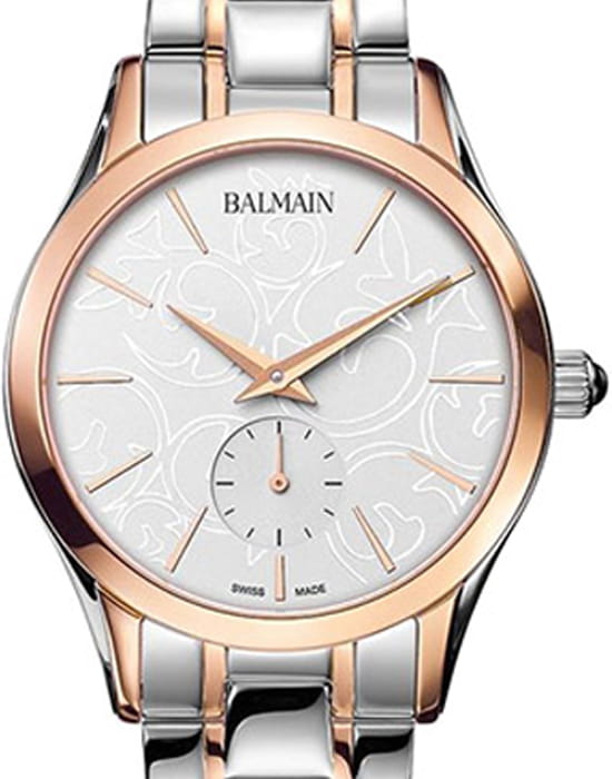Женские часы Balmain R Lady B4718.33.16 кварцевый механизм с высокой точностью. Сапфировое стеклоСапфировое стеклоПрочный и надёжный материал из кристалла сапфира синтетического происхождения, характеризующийся особой твёрдостью и устойчивостью к царапинам и повреждениям. устойчивое к появлению царапин, обладающее высокой прозрачностью. Корпус изготовлен из нержавеющей стали. Класс водозащиты: 50 метров, позволит защитить корпус от случайных брызг или капель дождя. Стальной браслет с PVD-покрытиемPVDУльтратонкое покрытие наносится в технике вакуумного напыления, сочетает в себе нитрид титана особой прочности со слоем золота или оксида хрома. Несёт в себе декоративную или защитную функцию.. на застёжке «бабочка» с кнопкамиЗастёжка "бабочка"Такой вид застёжки дополняется предохранителями, помогающими избежать случайного раскрытия браслета. Обладают изящным исполнением. .БезельБезельВнешний ободок, закрепляющий стекло. В спортивных часах так называется поворотное кольцо с делениями на циферблате, выполняет роль таймера – замеряет отрезки времени на шкале. Неподвижный безель – элемент декора. Однонаправленно вращающийся безель на дайверских часах позволяет фиксировать моменты погружения и выныривания на поверхность. с PVD-покрытиемPVDУльтратонкое покрытие наносится в технике вакуумного напыления, сочетает в себе нитрид титана особой прочности со слоем золота или оксида хрома. Несёт в себе декоративную или защитную функцию..