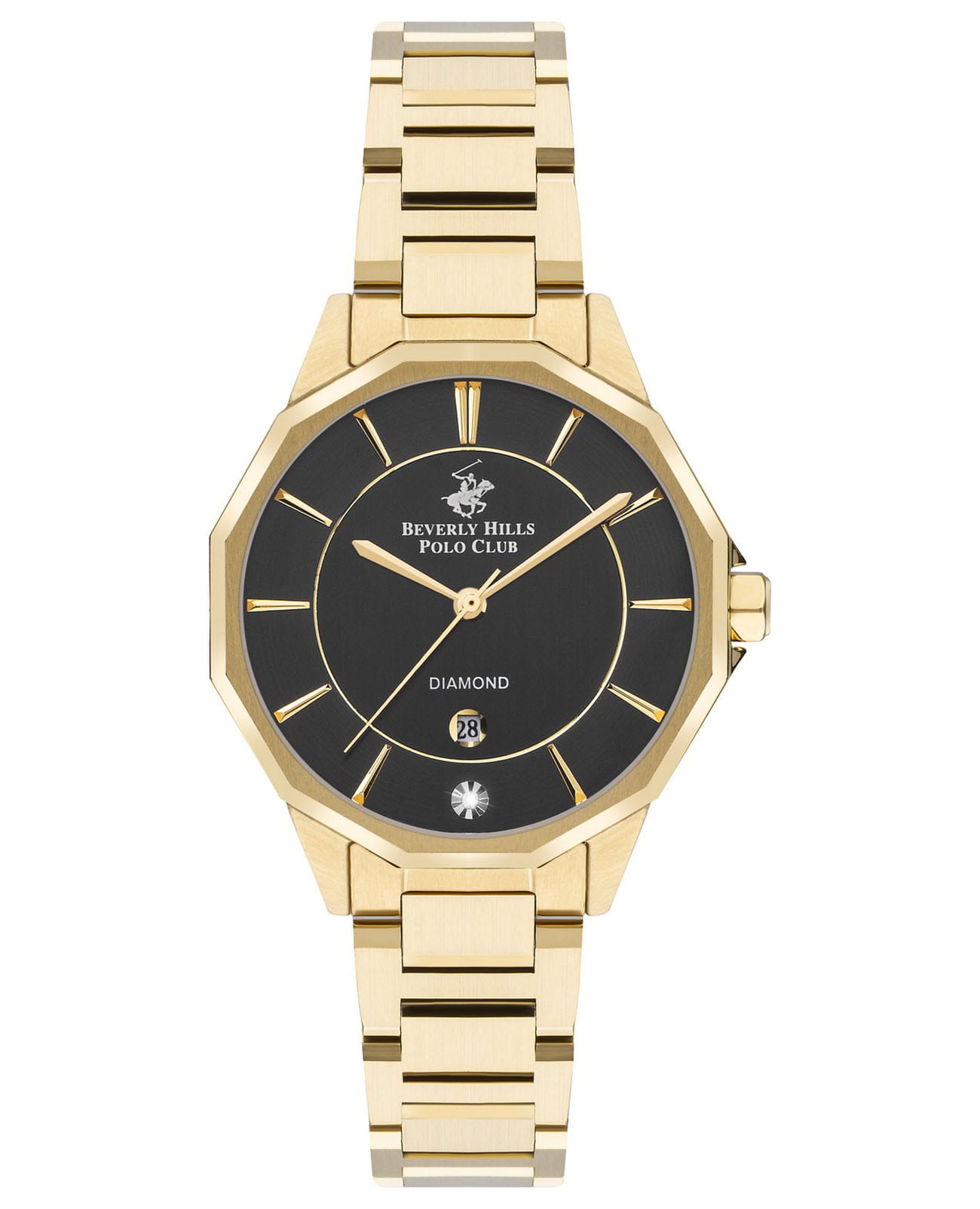 Американские женские часы Beverly Hills Polo Club BP3376X.250 с минеральным стекломМинеральное стеклоМинеральное стекло представляет собой искусственно выращенный минерал кварца. Такое стекло отличается особой устойчивостью к повреждениям и царапинам. Уступает по некоторым качествам сапфировому стеклу., кварцевый механизм с высокой точностью. Корпус и браслет часов изготовлены из стали с IP-покрытиемIP-покрытиеМетод ионного напыления. Демонстрирует повышенную устойчивость к истиранию, окислению и химическим веществам. Под воздействием высокого давления и температуры около 1500°C молекулы металла надёжно соединяются с частицами корпуса часов.. Циферблат украшен бриллиантом. Окошко даты находится в положении 6 часов. Класс водозащиты: 50 метров, позволит защитить корпус от случайных брызг или капель дождя. Браслет с раскладной застёжкойРаскладная застёжкаТакой тип застёжки используется только на браслетах из металла. Она никогда не раскрывается полностью, происходит разделение на 2 и более частей. Раскладывающая застёжка снизит вероятность потери часов к минимуму..
