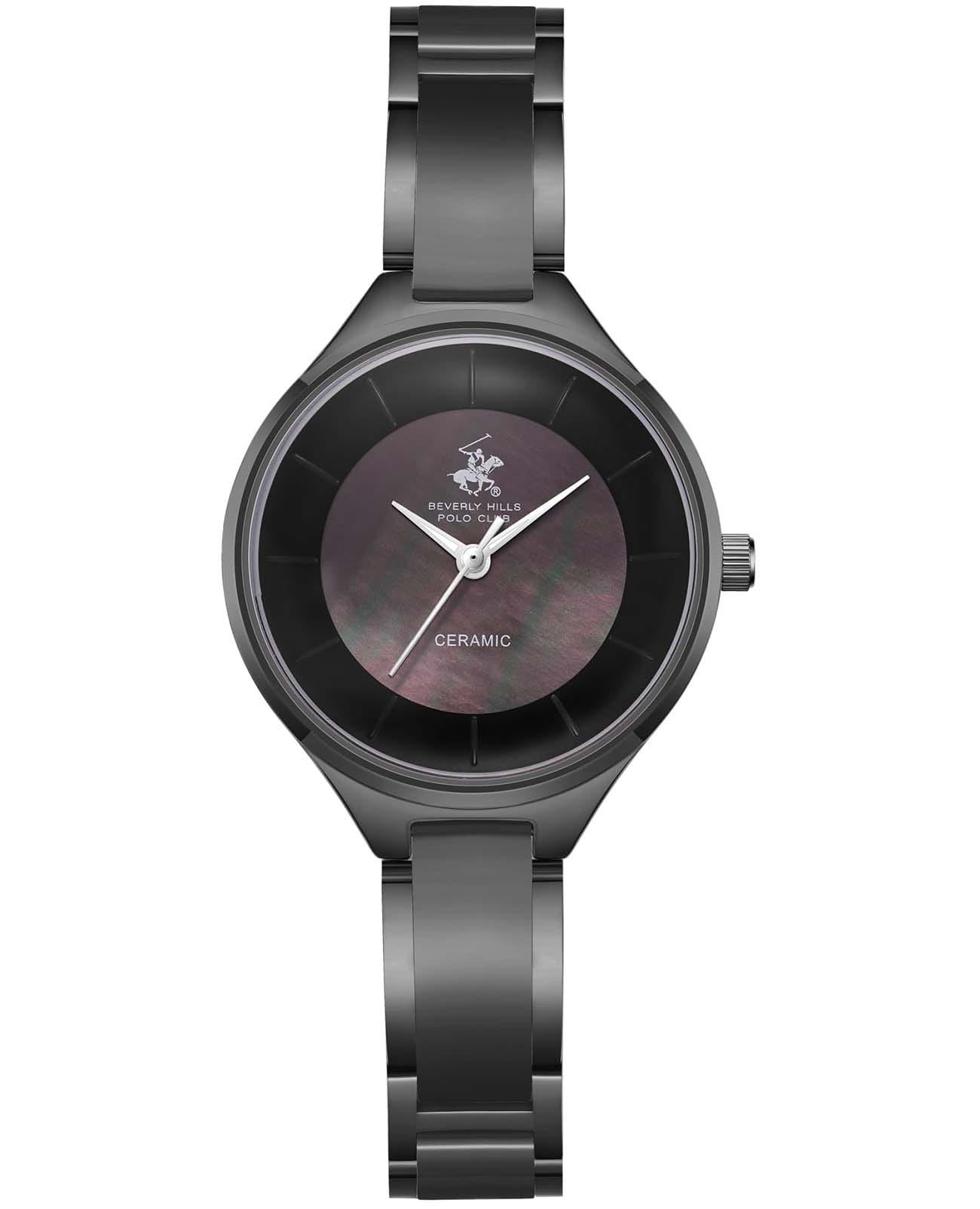 Beverly Hills Polo Club BP3706C.851 – элегантные женские часы, сочетающие современный дизайн и высокое качество. Корпус диаметром 30 мм выполнен из суперметалла с IP-покрытиемIP-покрытиеМетод ионного напыления. Демонстрирует повышенную устойчивость к истиранию, окислению и химическим веществам. Под воздействием высокого давления и температуры около 1500°C молекулы металла надёжно соединяются с частицами корпуса часов., что придаёт модели изысканный и стильный вид. Циферблат защищён минеральным стекломМинеральное стеклоМинеральное стекло представляет собой искусственно выращенный минерал кварца. Такое стекло отличается особой устойчивостью к повреждениям и царапинам. Уступает по некоторым качествам сапфировому стеклу., обеспечивающим устойчивость к царапинам. Часы оснащены точным кварцевым механизмом, гарантирующим надёжное и стабильное отображение времени. Браслет из нержавеющей стали с IP-покрытиемIP-покрытиеМетод ионного напыления. Демонстрирует повышенную устойчивость к истиранию, окислению и химическим веществам. Под воздействием высокого давления и температуры около 1500°C молекулы металла надёжно соединяются с частицами корпуса часов. и керамическими вставками оснащён ювелирной застежкой, обеспечивающей комфортное ношение и надёжную фиксацию на запястье. Водозащита до 50 метров (5 ATM) позволяет использовать часы в повседневной жизни, включая мытьё рук и попадание под дождь.