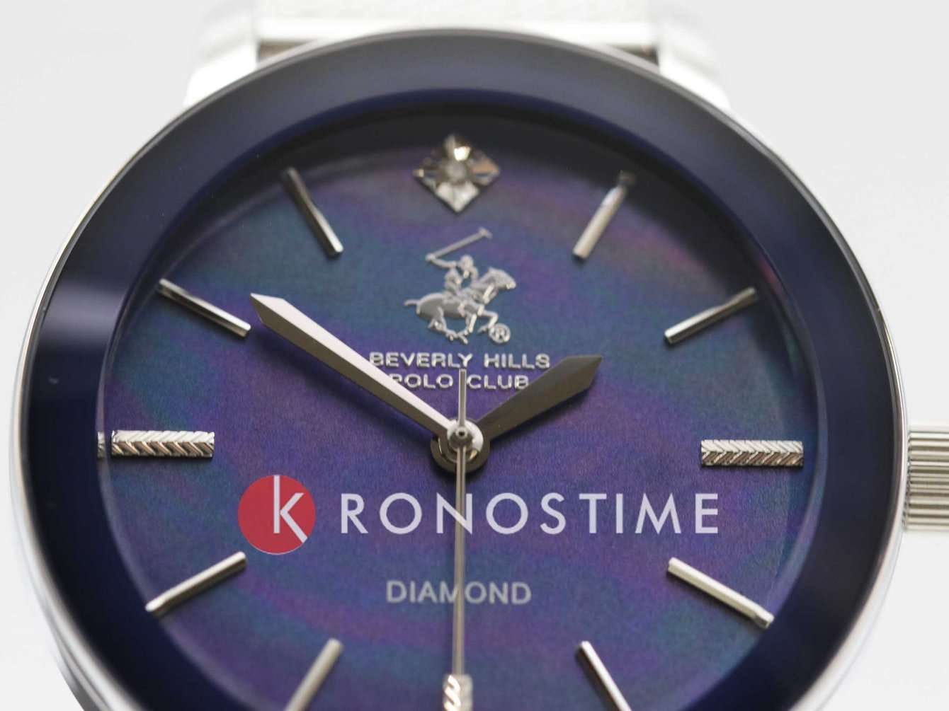 Beverly Hills Polo Club BP3734C.390 – элегантные женские часы, сочетающие стильный дизайн и высокую функциональность. Корпус диаметром 34 мм выполнен из нержавеющей стали, обеспечивающего прочность и долговечность. Перламутровый циферблат украшен синтетическим бриллиантом, придающими модели роскошный вид, и защищён минеральным стекломМинеральное стеклоМинеральное стекло представляет собой искусственно выращенный минерал кварца. Такое стекло отличается особой устойчивостью к повреждениям и царапинам. Уступает по некоторым качествам сапфировому стеклу., устойчивым к царапинам. БезельБезельВнешний ободок, закрепляющий стекло. В спортивных часах так называется поворотное кольцо с делениями на циферблате, выполняет роль таймера – замеряет отрезки времени на шкале. Неподвижный безель – элемент декора. Однонаправленно вращающийся безель на дайверских часах позволяет фиксировать моменты погружения и выныривания на поверхность. с PVD-покрытиемPVDУльтратонкое покрытие наносится в технике вакуумного напыления, сочетает в себе нитрид титана особой прочности со слоем золота или оксида хрома. Несёт в себе декоративную или защитную функцию.. Часы оснащены точным кварцевым механизмом, гарантирующим надёжное отображение времени. Стальной браслет миланского плетения на раскладном замкеРаскладной замокДанный вариант застежки используется только на часах с металлическим браслетом. Отличительная особенность такого крепления в том, что длина браслета становится универсальной и вы можете самостоятельно отрегулировать нужный вам размер – застежка просто двигается по браслету часов., обеспечивающий комфортное ношение и надёжную фиксацию на запястье. Водозащита до 50 метров (5 ATM) позволяет использовать часы в повседневной жизни, включая кратковременное погружение в воду.