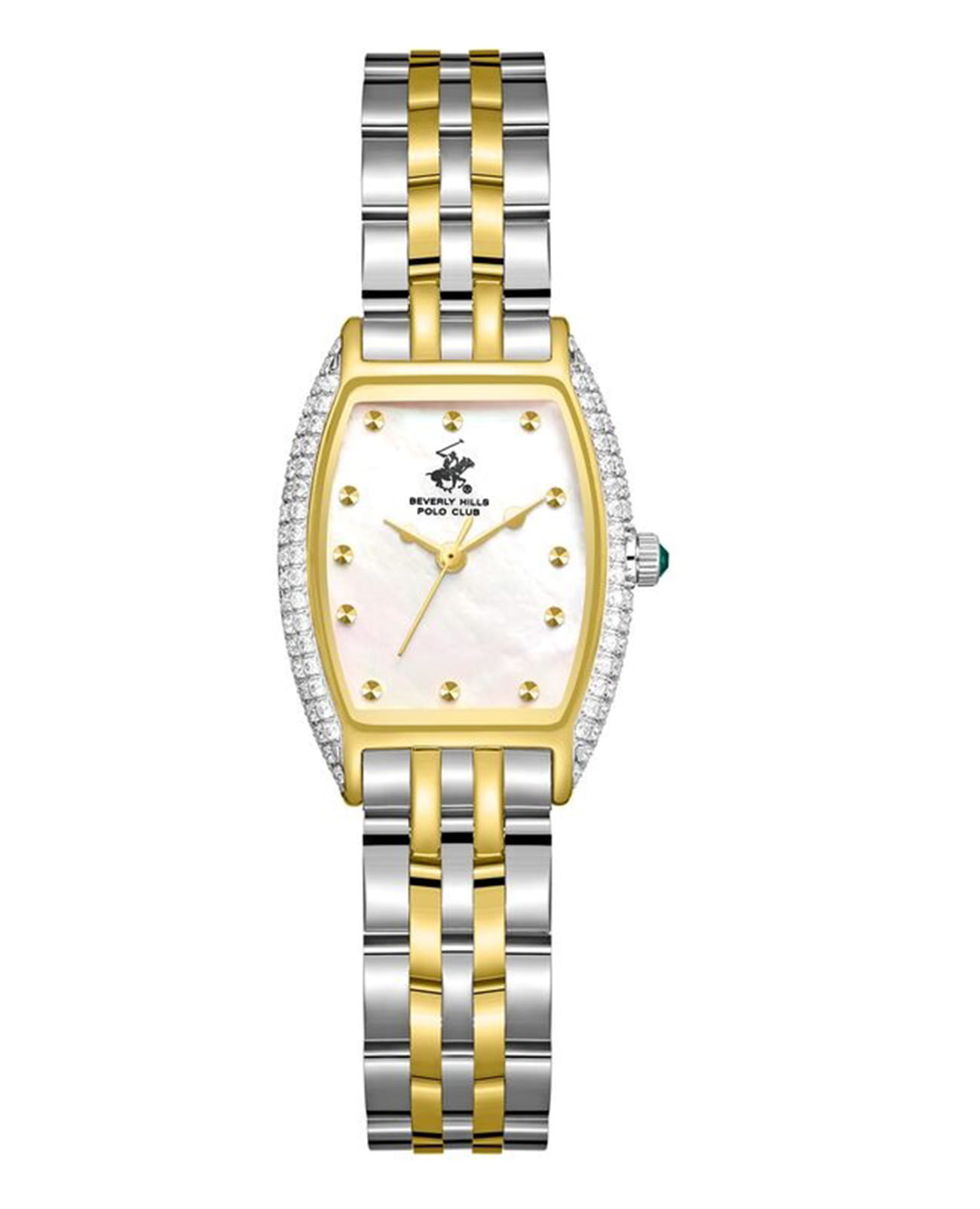 Женские кварцевые часы Beverly Hills Polo Club BP3804C.220 — это стильный аксессуар, сочетающий в себе элегантность и надёжность. Модель выполнена из нержавеющей стали 316L с IP-покрытиеIP-покрытиеМетод ионного напыления. Демонстрирует повышенную устойчивость к истиранию, окислению и химическим веществам. Под воздействием высокого давления и температуры около 1500°C молекулы металла надёжно соединяются с частицами корпуса часов., что придаёт ей устойчивость к царапинам и привлекательный внешний вид. Корпус имеет размеры 23x31 мм, а циферблат белого перламутра дополнен точечными метками и логотипом бренда. Защиту механизма обеспечивает минеральное стеклоМинеральное стеклоМинеральное стекло представляет собой искусственно выращенный минерал кварца. Такое стекло отличается особой устойчивостью к повреждениям и царапинам. Уступает по некоторым качествам сапфировому стеклу. с Сапфировое стеклоСапфировое стеклоПрочный и надёжный материал из кристалла сапфира синтетического происхождения, характеризующийся особой твёрдостью и устойчивостью к царапинам и повреждениям., устойчивое к повседневным нагрузкам. Неподвижный безельБезельВнешний ободок, закрепляющий стекло. В спортивных часах так называется поворотное кольцо с делениями на циферблате, выполняет роль таймера – замеряет отрезки времени на шкале. Неподвижный безель – элемент декора. Однонаправленно вращающийся безель на дайверских часах позволяет фиксировать моменты погружения и выныривания на поверхность. украшен цирконами, что делает модель особенно изысканной. Часы водонепроницаемы до 30 метров (, что позволяет использовать их при мытье рук или под лёгким дождём. Стальной браслет с покрытием оснащён классической застёжкой, обеспечивающей комфорт и надёжную фиксацию на запястье. Гарантия 12 месяцев подтверждает качество и долговечность изделия. Эти часы станут универсальным аксессуаром для тех, кто ценит сочетание стиля, функциональности и безупречного качества — идеальный выбор для повседневной носки и торжественных случаев.