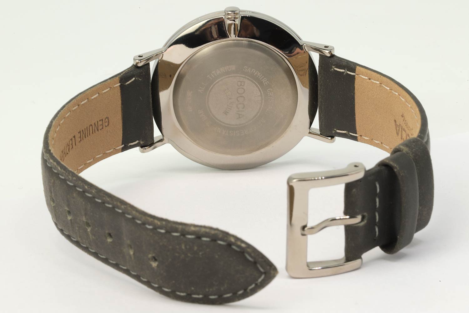 Мужские наручные часы Boccia Titanium 3642-01 с надёжным кварцевым механизмом. Сапфировое стеклоСапфировое стеклоПрочный и надёжный материал из кристалла сапфира синтетического происхождения, характеризующийся особой твёрдостью и устойчивостью к царапинам и повреждениям. устойчивое к мелким механическим повреждениям. Корпус часов изготовлен из титана. Кожаный ремешок на стандартной застёжке. Секундная стрелка на отдельном циферблате. Класс водозащиты: 30 метров, позволит защитить корпус от случайных брызг или капель дождя.