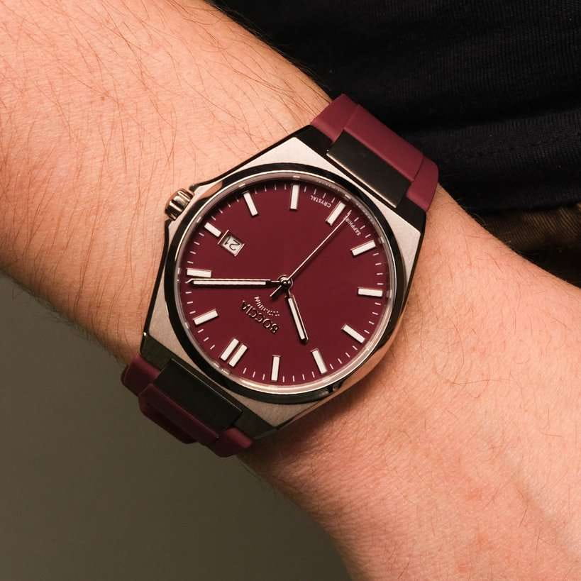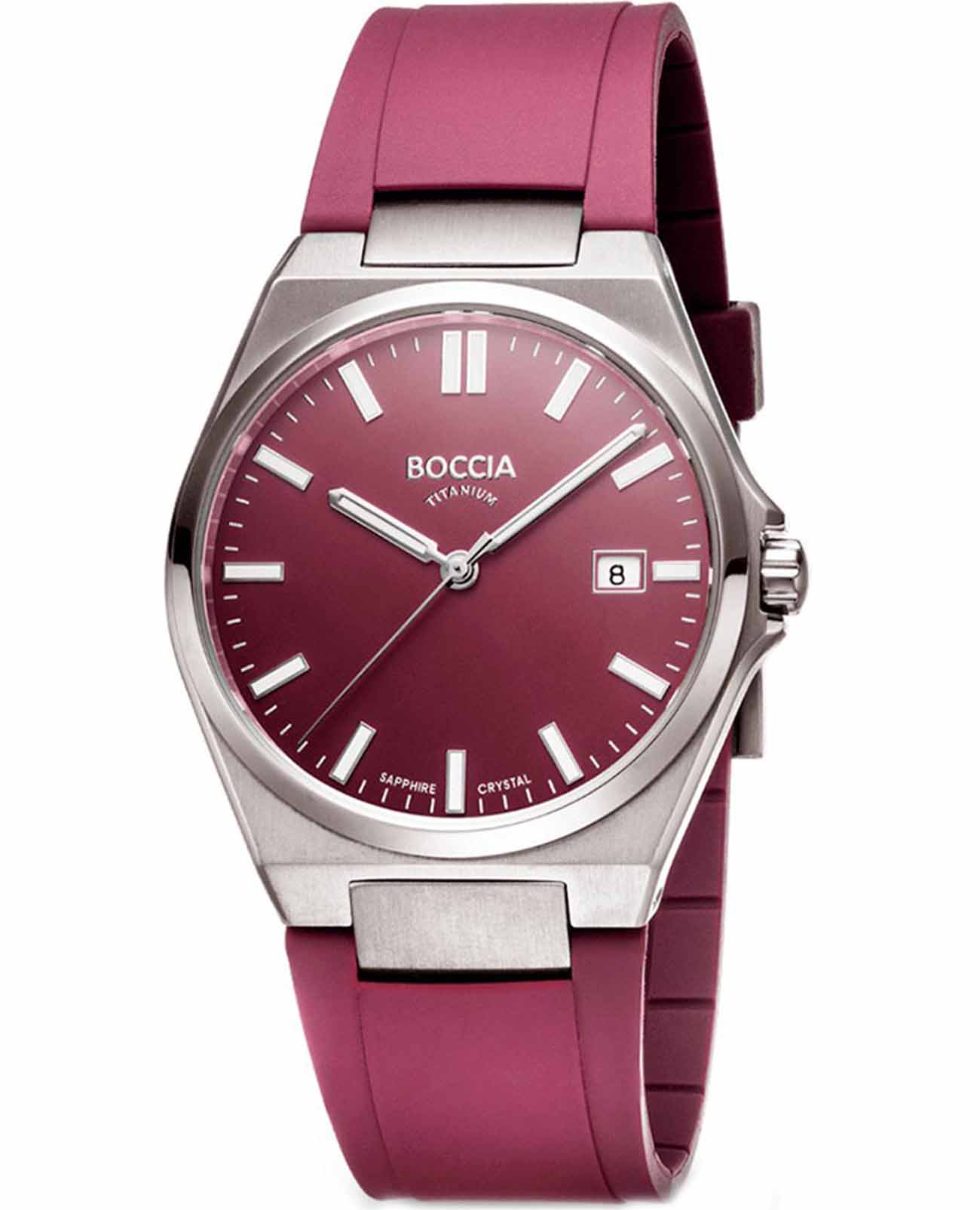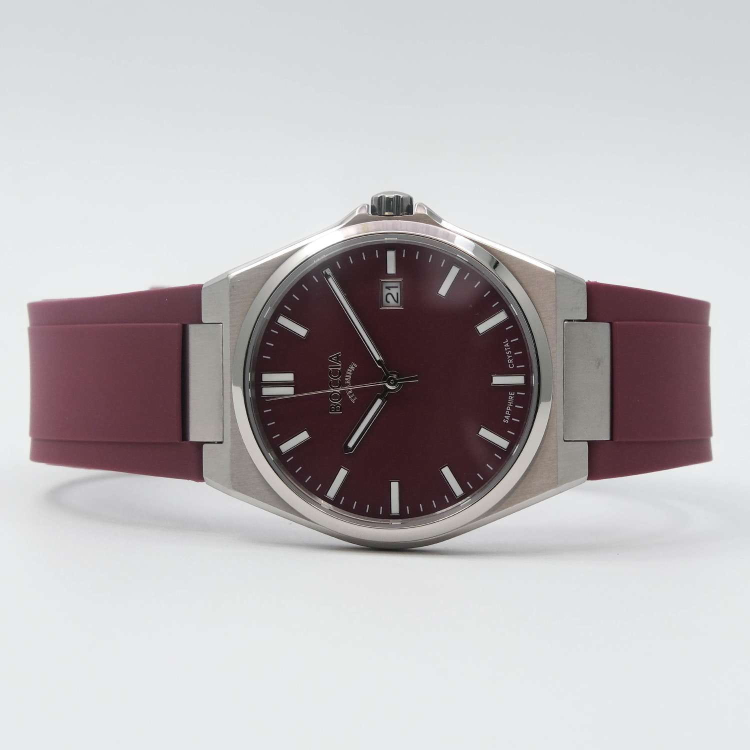 Мужские немецкие часы Boccia Titanium 3667-03 – это символ абсолютной точности и непревзойденной выносливости. Благодаря высокоточному кварцевому механизму калибру Miyota GR12, которые обеспечивают точность и долговечность, они обеспечивают идеальное измерение времени, а сапфировое стеклоСапфировое стеклоПрочный и надёжный материал из кристалла сапфира синтетического происхождения, характеризующийся особой твёрдостью и устойчивостью к царапинам и повреждениям. защищает циферблат цвета марсала от царапин, сохраняя его кристальную ясность. Корпус из титана отличается своей легкостью и прочностью, что делает часы не только надежными, но и невероятно удобными в носке. Класс водонепроницаемости 100 метров позволяет свободно плавать, нырять и заниматься различными водными активностями, не опасаясь за сохранность устройства. Каучуковый ремешок со стандартной застежкой обеспечивает комфорт и удобство в эксплуатации, а стрелки и метки с люминесцентным покрытиемЛюминесцентное покрытиеПозволяет считывать показания времени в темноте. Производители наносят на стрелки, часовые индексы, безель или поверхность циферблата светонакопительный состав, дающий холодное свечение. облегчают чтение времени даже в условиях низкой освещенности. Окошко даты, расположенное на отметке «3 часа», поможет вам всегда оставаться в курсе текущих дел.