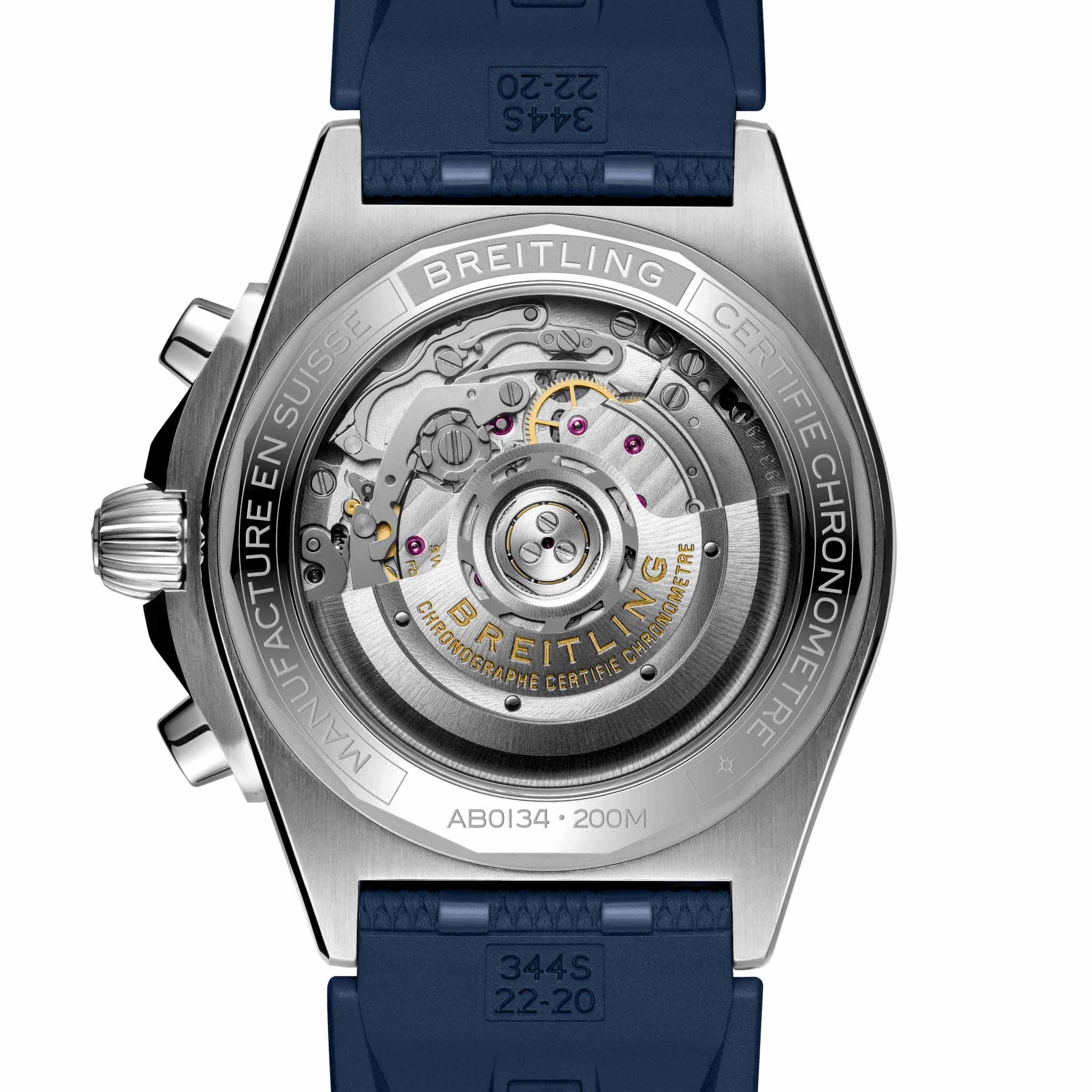 Мужские швейцарские часы-хронограф с секундомером Breitling Chronomat B01 42 AB0134101C1S1, механический механизм (автоматический калибр) с высокой точностью. Сапфировое стеклоСапфировое стеклоПрочный и надёжный материал из кристалла сапфира синтетического происхождения, характеризующийся особой твёрдостью и устойчивостью к царапинам и повреждениям. устойчивое к появлению царапин, обладающее высокой прозрачностью. Класс водозащиты: 200 метров, позволит плавать, нырять и заниматься другими водными видами спорта. Корпус часов изготовлен из нержавеющей стали. Стрелки и метки с люминесцентным покрытиемЛюминесцентное покрытиеПозволяет считывать показания времени в темноте. Производители наносят на стрелки, часовые индексы, безель или поверхность циферблата светонакопительный состав, дающий холодное свечение.. Шкала тахиметра на циферблате. Окошко даты находится в положении 6 часов. Каучуковый ремешок на раскладной застёжкеРаскладная застёжкаТакой тип застёжки используется только на браслетах из металла. Она никогда не раскрывается полностью, происходит разделение на 2 и более частей. Раскладывающая застёжка снизит вероятность потери часов к минимуму..