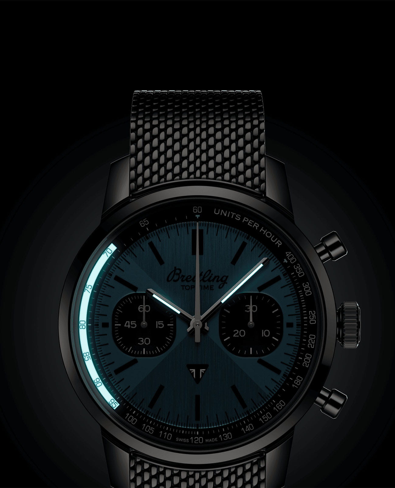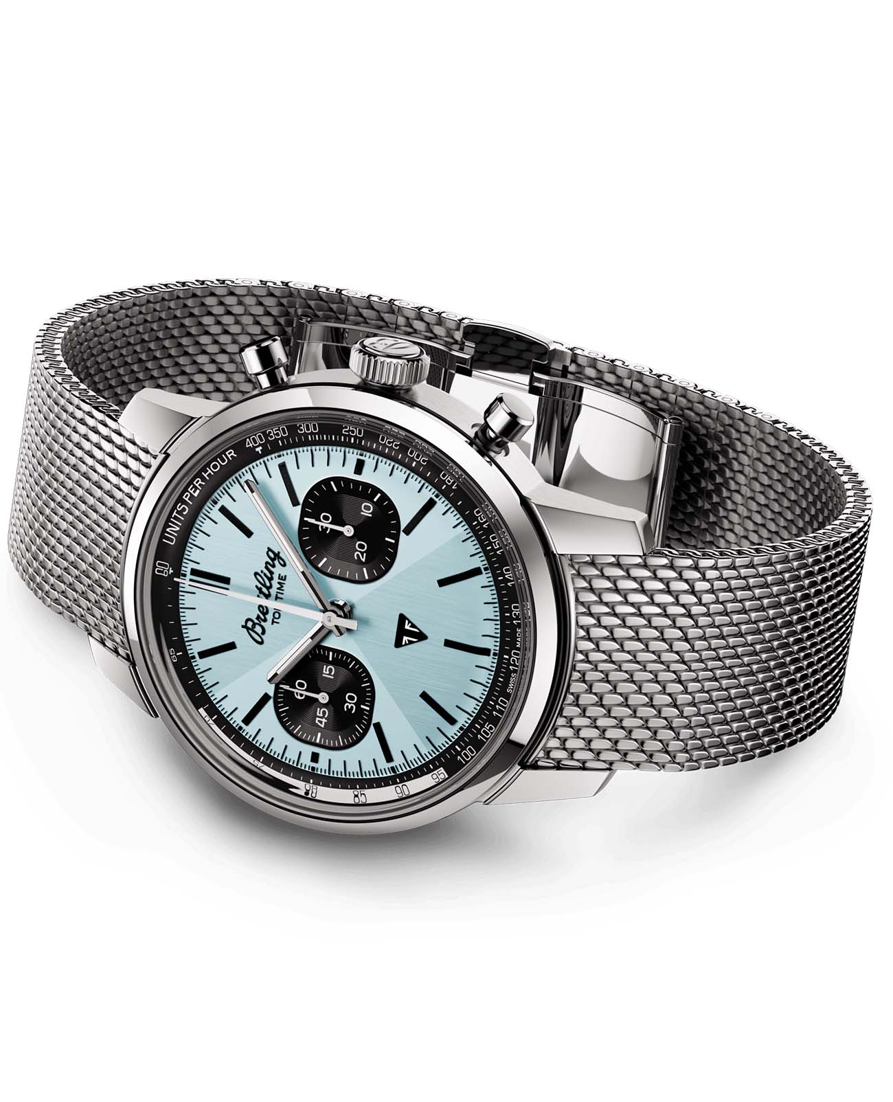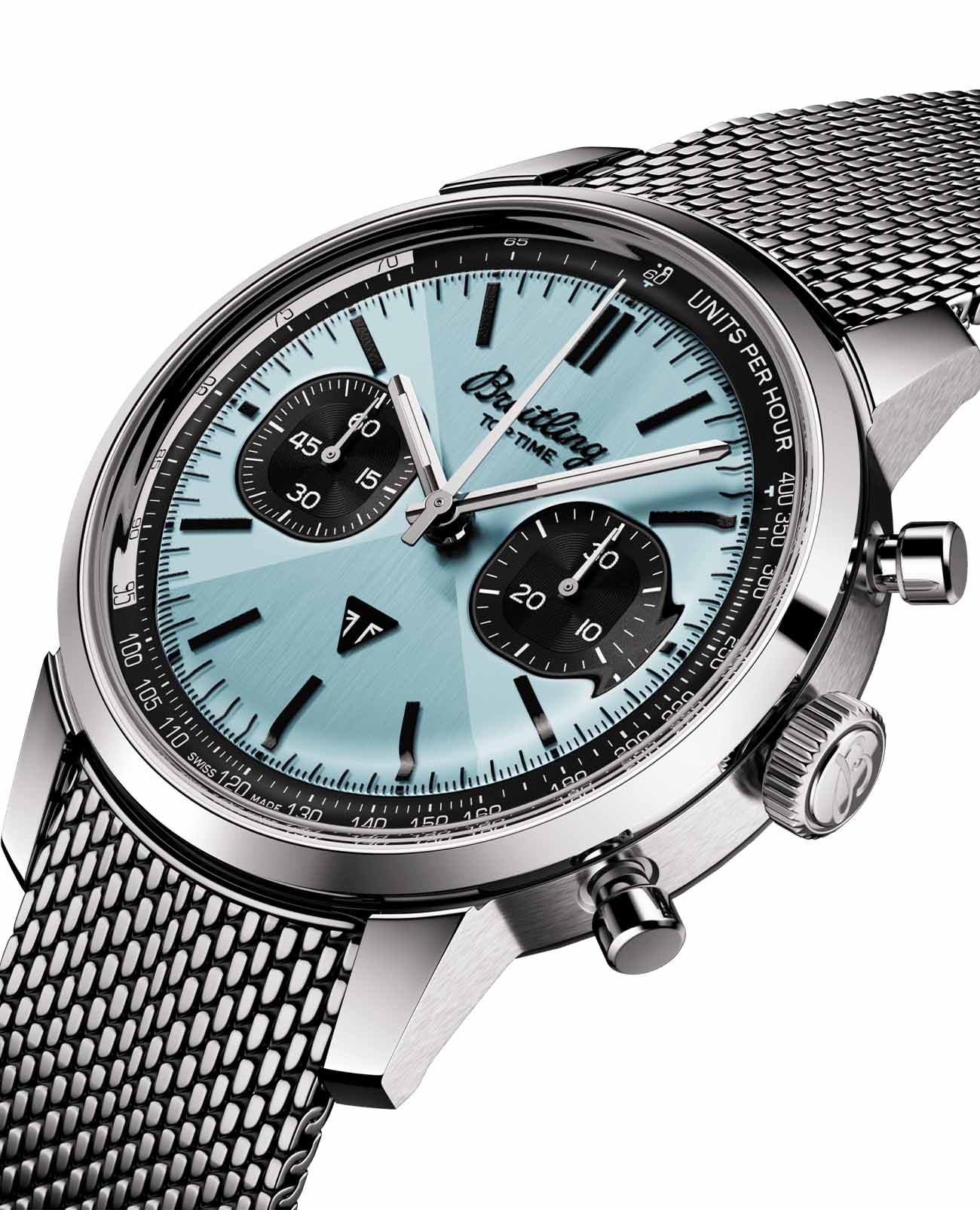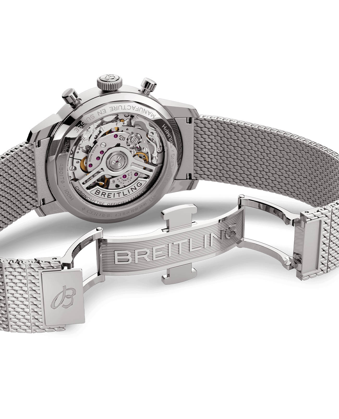 Мужские швейцарские часы-хронографХронографФункция позволяет измерять отрезки времени с особой точностью: часы, минуты, секунды. Верным признаком хронографа является наличие на циферблате 3 дополнительных окошек-счётчиков. с тахиметромТахиметрРазмеченная шкала, располагается на ободке или безеле часов. Тахиметр позволяет рассчитать скорость на определённом участке пути, расстояние измеряется в километрах или милях. Breitling Top Time B01 Triumph AB01764A1C1A1, механический механизм (автоматический калибр) с высокой точностью. Сапфировое стеклоСапфировое стеклоПрочный и надёжный материал из кристалла сапфира синтетического происхождения, характеризующийся особой твёрдостью и устойчивостью к царапинам и повреждениям. устойчивое к появлению царапин, обладающее высокой прозрачностью. Корпус часов изготовлен из нержавеющей стали. Стальной браслет миланского плетения и застёжка «бабочка» с кнопкамиЗастёжка "бабочка"Такой вид застёжки дополняется предохранителями, помогающими избежать случайного раскрытия браслета. Обладают изящным исполнением. . Класс водозащиты: 100 метров, позволит плавать, нырять и заниматься другими водными видами спорта. Стрелки и метки с люминесцентным покрытиемЛюминесцентное покрытиеПозволяет считывать показания времени в темноте. Производители наносят на стрелки, часовые индексы, безель или поверхность циферблата светонакопительный состав, дающий холодное свечение..