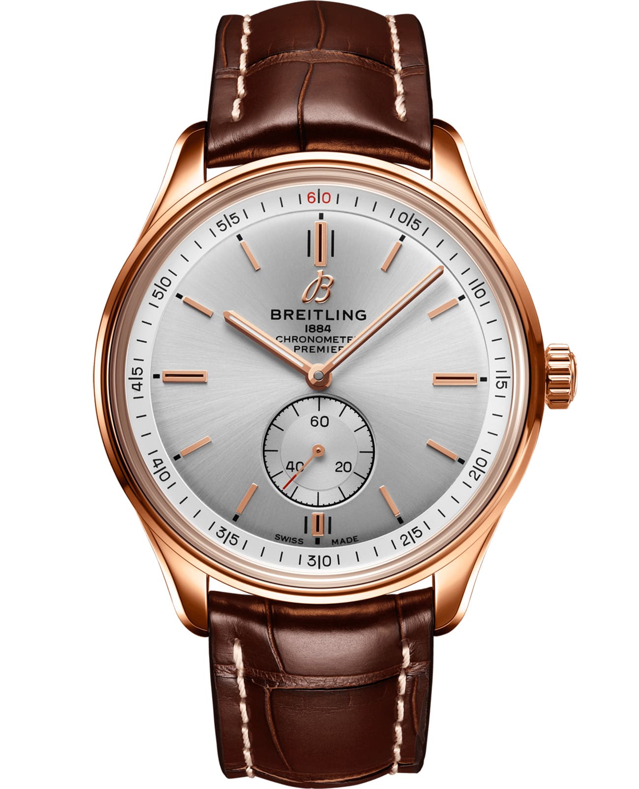 Модель предлагается в комплекте с браслетом или ремешком из телячьей кожи нубук или кожи аллигатора с классической или раскладной застежкой. Внутри корпуса спрятан калибр Breitling Caliber 37, сертифицированный Швейцарским институтом официального тестирования хронометров (COSC).