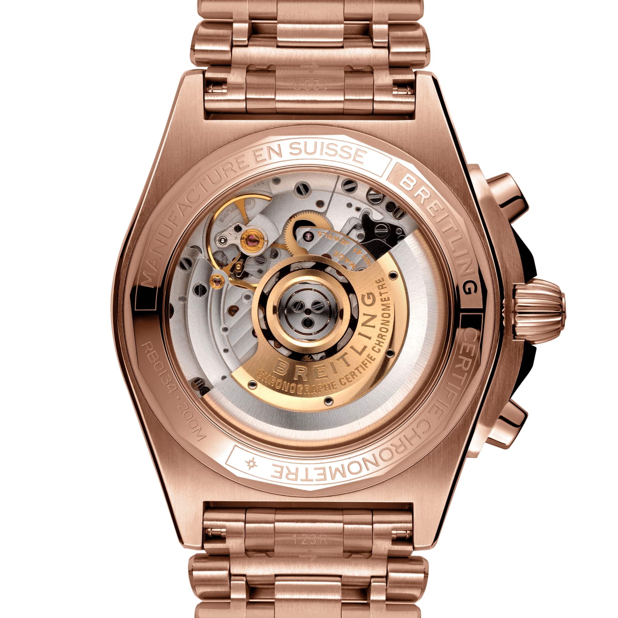 Часы оснащены автоматическим калибром Breitling 01, сертифицированным COSCСертификат COSCОфициальный сертификат, подтверждающий то, что часы ходят с особо высокой точностью. Для получения документа часы подвергаются тестовым испытаниям, разработанным швейцарским институтом тестирования хронометров COSC. Допустимая норма для механических часов -4/+6 секунд в день, для кварцевых моделей +/- 0,07 секунд в день.. Механизм имеет частоту 28 800 полуколебаний в час, 47 камней и запас хода около 70 часов. Водозащита до 20 ATM (200 метров) делает их подходящими для плавания и дайвинга.
