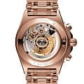 Корпус диаметром 42 мм выполнен из 18-каратного красного золота18-каратное золотоОбозначение по каратной системе пробирования, оно показывает, сколько драгоценного металла содержится в изделии. 18 карат - в составе 75% чистого золота, соответствует 750 пробе.