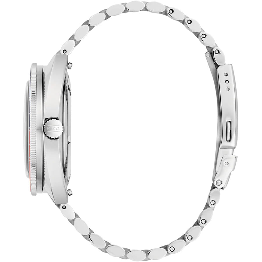 Мужские механические часы с автоподзаводом Bulova Oceanographer 96B405 – отражающий идеальное сочетание современного дизайна, надёжности и функциональности. Элегантный облик станет превосходным завершением образа, наделив его индивидуальным характером. Корпус из нержавеющей стали серебристого цвета, диаметром 41 мм идеально сбалансирован и элегантен. Сапфировое стеклоСапфировое стеклоПрочный и надёжный материал из кристалла сапфира синтетического происхождения, характеризующийся особой твёрдостью и устойчивостью к царапинам и повреждениям. защищает циферблат от царапин и устойчивое к мелким механическим повреждениям. Стальной браслет на раскладной застёжке с фиксаторомРаскладная застёжкаТакой тип застёжки используется только на браслетах из металла. Она никогда не раскрывается полностью, происходит разделение на 2 и более частей. Раскладывающая застёжка снизит вероятность потери часов к минимуму. обеспечивает комфортное ношение. Поворотный безельБезельВнешний ободок, закрепляющий стекло. В спортивных часах так называется поворотное кольцо с делениями на циферблате, выполняет роль таймера – замеряет отрезки времени на шкале. Неподвижный безель – элемент декора. Однонаправленно вращающийся безель на дайверских часах позволяет фиксировать моменты погружения и выныривания на поверхность. с IP-покрытиемIP-покрытиеМетод ионного напыления. Демонстрирует повышенную устойчивость к истиранию, окислению и химическим веществам. Под воздействием высокого давления и температуры около 1500°C молекулы металла надёжно соединяются с частицами корпуса часов.. Окошко даты находится в положении 3 часа. Стрелки и метки с люминесцентным покрытиемЛюминесцентное покрытиеПозволяет считывать показания времени в темноте. Производители наносят на стрелки, часовые индексы, безель или поверхность циферблата светонакопительный состав, дающий холодное свечение.. Водозащита 200 метров позволит плавать, нырять и заниматься другими водными видами спорта. Эта модель – отличный выбор для тех, кто ищет сочетание стиля, качества и функциональности. Часы станут не только полезным аксессуаром, но и выразительным элементом вашего имиджа.