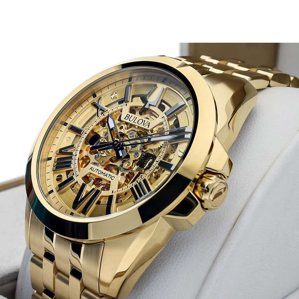 Мужские механические часы-скелетоны с автоподзаводом Bulova Sutton 97A162 – отражающий идеальное сочетание современного дизайна, надёжности и функциональности. Элегантный облик станет превосходным завершением образа, наделив его индивидуальным характером. Корпус из нержавеющей стали с PVD-покрытиемPVDУльтратонкое покрытие наносится в технике вакуумного напыления, сочетает в себе нитрид титана особой прочности со слоем золота или оксида хрома. Несёт в себе декоративную или защитную функцию. золотистого цвета, диаметром 43 мм идеально сбалансирован и элегантен. Минеральное стеклоМинеральное стеклоМинеральное стекло представляет собой искусственно выращенный минерал кварца. Такое стекло отличается особой устойчивостью к повреждениям и царапинам. Уступает по некоторым качествам сапфировому стеклу. защищает циферблат от царапин и устойчивое к мелким механическим повреждениям. Стальной браслет с PVD-покрытиемPVDУльтратонкое покрытие наносится в технике вакуумного напыления, сочетает в себе нитрид титана особой прочности со слоем золота или оксида хрома. Несёт в себе декоративную или защитную функцию. на застёжке-бабочке с кнопкамиЗастёжка "бабочка"Такой вид застёжки дополняется предохранителями, помогающими избежать случайного раскрытия браслета. Обладают изящным исполнением. обеспечивает комфортное ношение. Водозащита 100 метров позволит плавать, нырять и заниматься другими водными видами спорта. Стрелки с люминесцентным покрытиемЛюминесцентное покрытиеПозволяет считывать показания времени в темноте. Производители наносят на стрелки, часовые индексы, безель или поверхность циферблата светонакопительный состав, дающий холодное свечение. позволяющие легко определять время даже в темноте. Эта модель – отличный выбор для тех, кто ищет сочетание стиля, качества и функциональности. Часы станут не только полезным аксессуаром, но и выразительным элементом вашего имиджа.