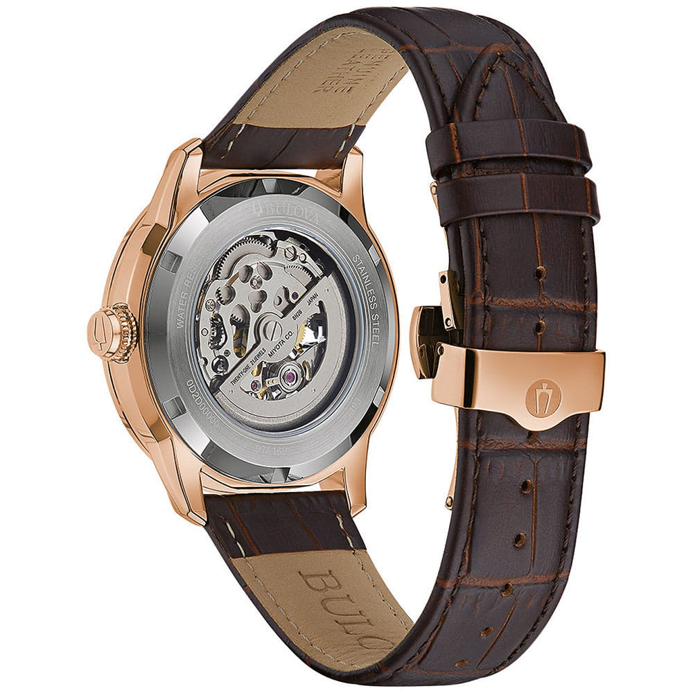 Мужские механические часы-скелетоны с автоподзаводом Bulova Sutton 97A169 – отражающий идеальное сочетание современного дизайна, надёжности и функциональности. Элегантный облик станет превосходным завершением образа, наделив его индивидуальным характером. Корпус из нержавеющей стали с IP-покрытиемIP-покрытиеМетод ионного напыления. Демонстрирует повышенную устойчивость к истиранию, окислению и химическим веществам. Под воздействием высокого давления и температуры около 1500°C молекулы металла надёжно соединяются с частицами корпуса часов. цвета розового золота, диаметром 43 мм идеально сбалансирован и элегантен. Минеральное стеклоМинеральное стеклоМинеральное стекло представляет собой искусственно выращенный минерал кварца. Такое стекло отличается особой устойчивостью к повреждениям и царапинам. Уступает по некоторым качествам сапфировому стеклу. защищает циферблат от царапин и устойчивое к мелким механическим повреждениям. Кожаный ремешок на застёжке-бабочке с кнопкамиЗастёжка "бабочка"Такой вид застёжки дополняется предохранителями, помогающими избежать случайного раскрытия браслета. Обладают изящным исполнением. обеспечивает комфортное ношение. Водозащита 30 метров позволит защитить корпус от случайных брызг или капель дождя. Стрелки с люминесцентным покрытиемЛюминесцентное покрытиеПозволяет считывать показания времени в темноте. Производители наносят на стрелки, часовые индексы, безель или поверхность циферблата светонакопительный состав, дающий холодное свечение. позволяющие легко определять время даже в темноте. Прозрачная задняя крышка. Эта модель – отличный выбор для тех, кто ищет сочетание стиля, качества и функциональности. Часы станут не только полезным аксессуаром, но и выразительным элементом вашего имиджа.