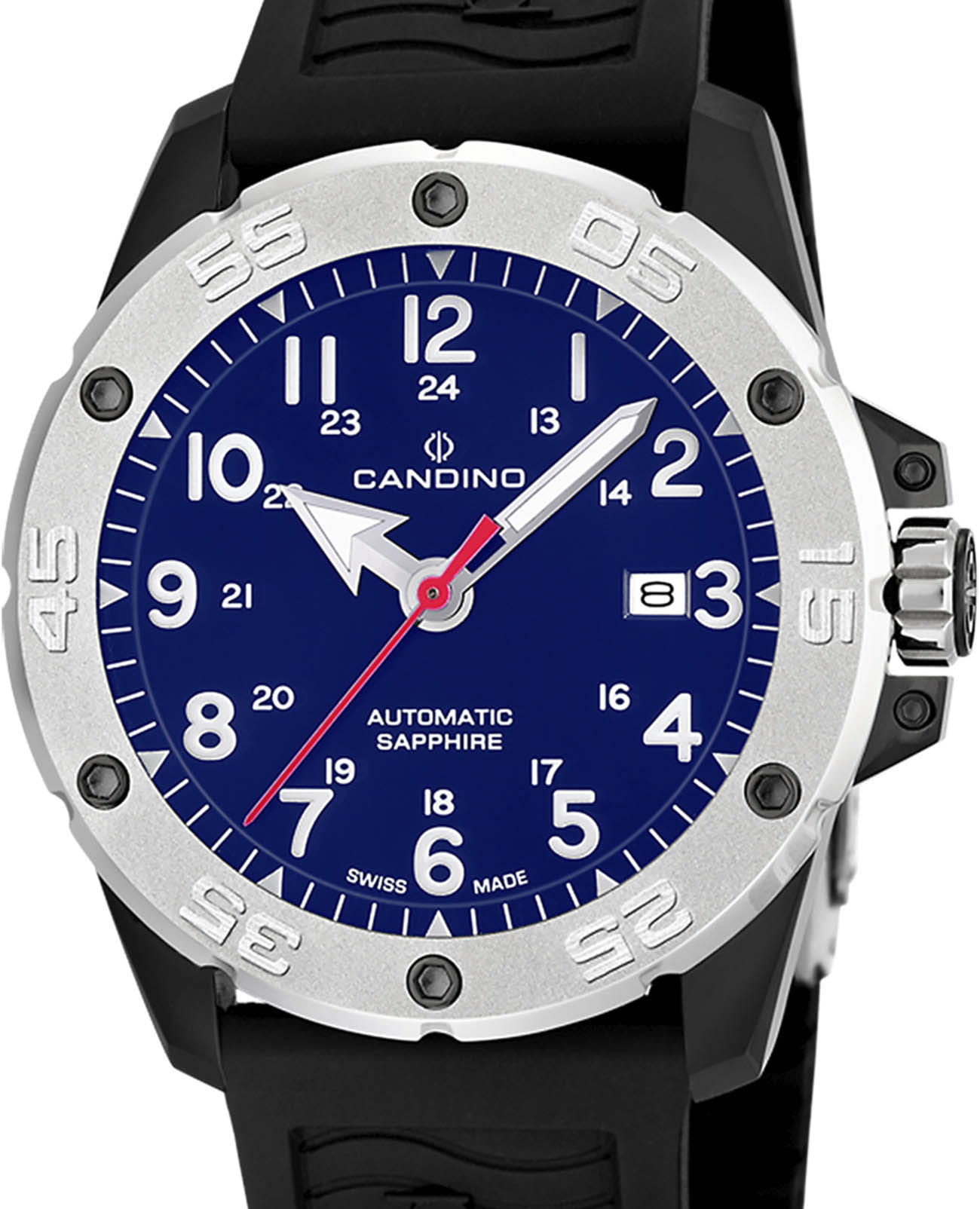 Швейцарские часы Candino C4474/6 — это стильный и надежный аксессуар для мужчин, который идеально сочетает в себе передовые технологии и элегантный дизайн. Корпус с PVD-покрытиемPVDУльтратонкое покрытие наносится в технике вакуумного напыления, сочетает в себе нитрид титана особой прочности со слоем золота или оксида хрома. Несёт в себе декоративную или защитную функцию. и безельБезельВнешний ободок, закрепляющий стекло. В спортивных часах так называется поворотное кольцо с делениями на циферблате, выполняет роль таймера – замеряет отрезки времени на шкале. Неподвижный безель – элемент декора. Однонаправленно вращающийся безель на дайверских часах позволяет фиксировать моменты погружения и выныривания на поверхность. из нержавеющей стали в сочетании с каучуковым черным ремешком на раскладной застёжкеРаскладная застёжкаТакой тип застёжки используется только на браслетах из металла. Она никогда не раскрывается полностью, происходит разделение на 2 и более частей. Раскладывающая застёжка снизит вероятность потери часов к минимуму. придает им современный и динамичный вид. Механизм с автоподзаводом обеспечивает бесперебойную работу, а защищает синий циферблат сапфировое стеклоСапфировое стеклоПрочный и надёжный материал из кристалла сапфира синтетического происхождения, характеризующийся особой твёрдостью и устойчивостью к царапинам и повреждениям. гарантирует повышенную защиту от царапин. Стрелки с люминесцентным покрытиемЛюминесцентное покрытиеПозволяет считывать показания времени в темноте. Производители наносят на стрелки, часовые индексы, безель или поверхность циферблата светонакопительный состав, дающий холодное свечение. облегчают чтение времени даже в условиях слабого освещения. Окошко даты находится в положении 3 часа. Благодаря водозащите до 200 метров, эти часы будут надежным спутником как в повседневной жизни, так и в активных приключениях.