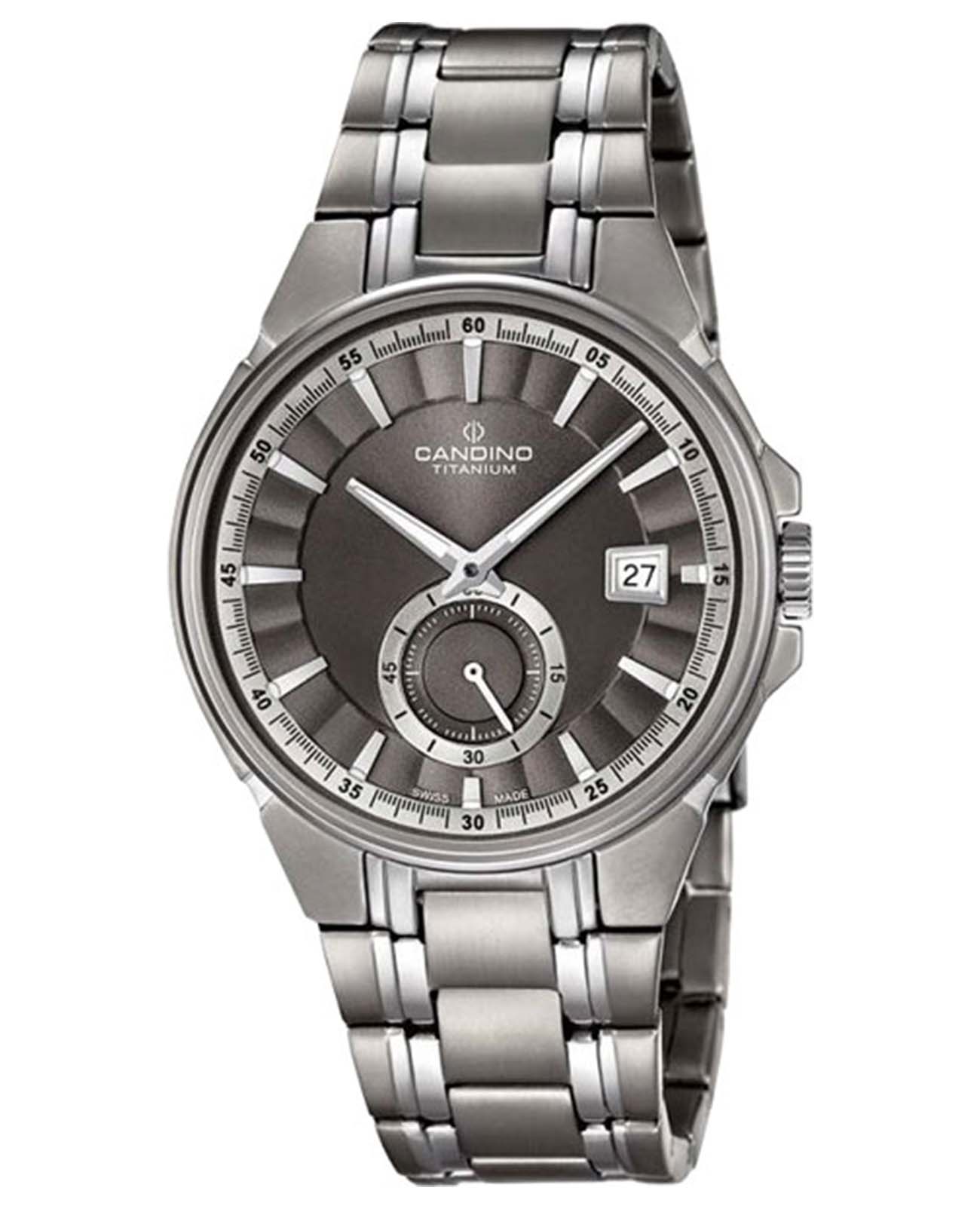 Швейцарские мужские наручные часы Candino Titanium C4604/1, кварцевый механизм с высокой точностью. Сапфировое стеклоСапфировое стеклоПрочный и надёжный материал из кристалла сапфира синтетического происхождения, характеризующийся особой твёрдостью и устойчивостью к царапинам и повреждениям. устойчивое к появлению царапин, обладающее высокой прозрачностью. Корпус часов изготовлен из титана. Секундная стрелка вынесена на отдельный циферблат. Стрелки и метки с люминесцентным покрытиемЛюминесцентное покрытиеПозволяет считывать показания времени в темноте. Производители наносят на стрелки, часовые индексы, безель или поверхность циферблата светонакопительный состав, дающий холодное свечение.. Окошко даты находится в положении 3 часов. Класс водозащиты: 50 метров, позволит защитить корпус от случайных брызг или капель дождя. Титановый браслет на раскладной застёжкеРаскладная застёжкаТакой тип застёжки используется только на браслетах из металла. Она никогда не раскрывается полностью, происходит разделение на 2 и более частей. Раскладывающая застёжка снизит вероятность потери часов к минимуму..