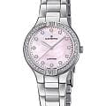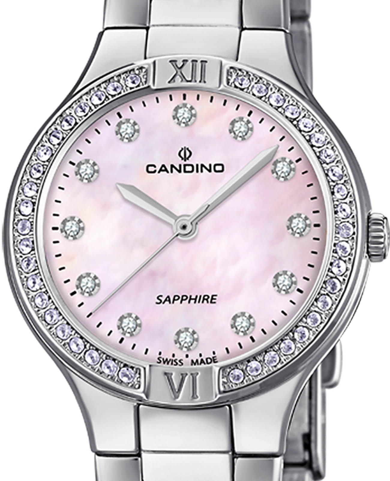 Женские кварцевые часы Candino из коллекции Lady Petite — это элегантный аксессуар, сочетающий швейцарское качество и утончённый дизайн. Корпус диаметром 30 мм выполнен из нержавеющей стали. Циферблат перламутрового цвета оформлен индексами в виде точек и украшен цирконием, придающими изделию изысканность. Циферблат защищён сапфировым стекломСапфировое стеклоПрочный и надёжный материал из кристалла сапфира синтетического происхождения, характеризующийся особой твёрдостью и устойчивостью к царапинам и повреждениям., устойчивым к царапинам. Механизм — кварцевый, обеспечивает высокую точность хода и минимальное обслуживание. Часы оснащены стальным браслетом с раскладной застёжкойРаскладная застёжкаТакой тип застёжки используется только на браслетах из металла. Она никогда не раскрывается полностью, происходит разделение на 2 и более частей. Раскладывающая застёжка снизит вероятность потери часов к минимуму.. Водонепроницаемость 50 м позволяет использовать часы в повседневных условиях, включая дождь и мытьё рук. Гарантия — 2 года. Идеальный выбор для тех, кто ценит стиль, надёжность и женственность.