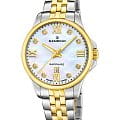 Женские наручные часы Candino Lady Elegance Date C4767/1 с надёжным кварцевым механизмом. Корпус и браслет часов изготовлены из нержавеющей стали. Сапфировое стеклоСапфировое стеклоПрочный и надёжный материал из кристалла сапфира синтетического происхождения, характеризующийся особой твёрдостью и устойчивостью к царапинам и повреждениям. повышенной прозрачности, устойчивое к мелким механическим повреждениям. Стальной браслет с частичным PVD-покрытиемPVDУльтратонкое покрытие наносится в технике вакуумного напыления, сочетает в себе нитрид титана особой прочности со слоем золота или оксида хрома. Несёт в себе декоративную или защитную функцию. на раскладной застёжкеРаскладная застёжкаТакой тип застёжки используется только на браслетах из металла. Она никогда не раскрывается полностью, происходит разделение на 2 и более частей. Раскладывающая застёжка снизит вероятность потери часов к минимуму.. Стрелки с люминесцентным покрытиемЛюминесцентное покрытиеПозволяет считывать показания времени в темноте. Производители наносят на стрелки, часовые индексы, безель или поверхность циферблата светонакопительный состав, дающий холодное свечение.. Циферблат инкрустирован кристаллами. Класс водозащиты: 50 метров, позволит защитить корпус от случайных брызг или капель дождя. Окошко даты находится в положении 6 часов.