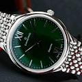 Мужские кварцевые часы Candino Series 1947 — это сочетание минимализма, швейцарского качества и современного дизайна. Корпус диаметром 39 мм и толщиной всего 6 мм выполнен из нержавеющей стали 316L, что делает часы особенно лёгкими и комфортными в ношении. Циферблат зелёного цвета оформлен двумя стрелками, без индикации даты, что придаёт дизайну чистоту и элегантность. Циферблат защищён сапфировым стекломСапфировое стеклоПрочный и надёжный материал из кристалла сапфира синтетического происхождения, характеризующийся особой твёрдостью и устойчивостью к царапинам и повреждениям., устойчивым к царапинам. Механизм — кварцевый произведённый в Швейцарии. Часы оснащены стальным браслетом с застёжкой «бабочка» с кнопкамиЗастёжка "бабочка"Такой вид застёжки дополняется предохранителями, помогающими избежать случайного раскрытия браслета. Обладают изящным исполнением. . Водонепроницаемость 50 м позволяет использовать часы в повседневных условиях. Гарантия — 2 года. Идеальный выбор для тех, кто ценит лаконичный стиль, точность и надёжность.