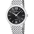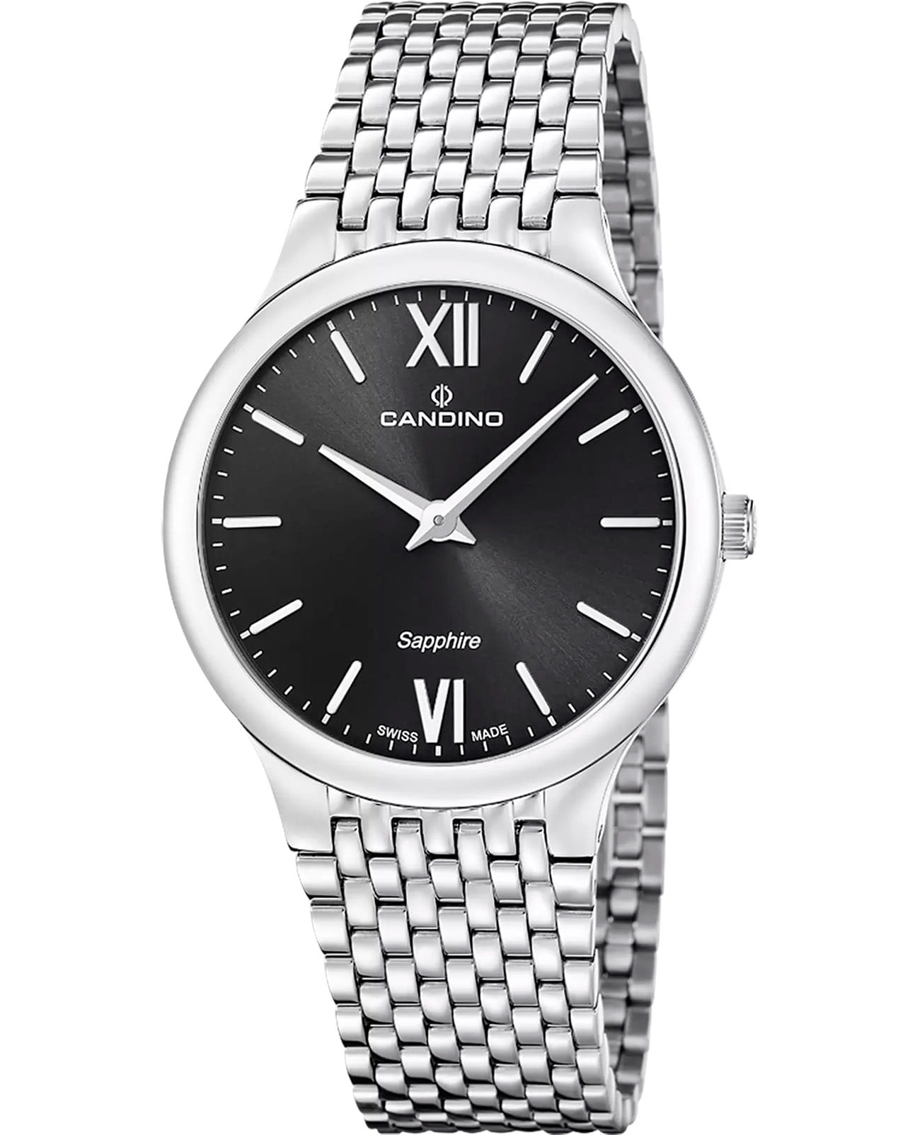 Мужские кварцевые часы Candino Series 1947 — это сочетание минимализма, швейцарского качества и современного дизайна. Корпус диаметром 39 мм и толщиной всего 6 мм выполнен из нержавеющей стали 316L, что делает часы особенно лёгкими и комфортными в ношении. Циферблат чёрного цвета оформлен двумя стрелками, без индикации даты, что придаёт дизайну чистоту и элегантность. Циферблат защищён сапфировым стекломСапфировое стеклоПрочный и надёжный материал из кристалла сапфира синтетического происхождения, характеризующийся особой твёрдостью и устойчивостью к царапинам и повреждениям., устойчивым к царапинам. Механизм — кварцевый произведённый в Швейцарии. Часы оснащены стальным браслетом с застёжкой «бабочка» с кнопкамиЗастёжка "бабочка"Такой вид застёжки дополняется предохранителями, помогающими избежать случайного раскрытия браслета. Обладают изящным исполнением. . Водонепроницаемость 50 м позволяет использовать часы в повседневных условиях. Гарантия — 2 года. Идеальный выбор для тех, кто ценит лаконичный стиль, точность и надёжность.