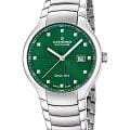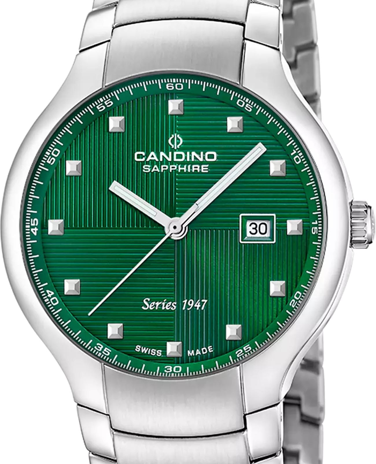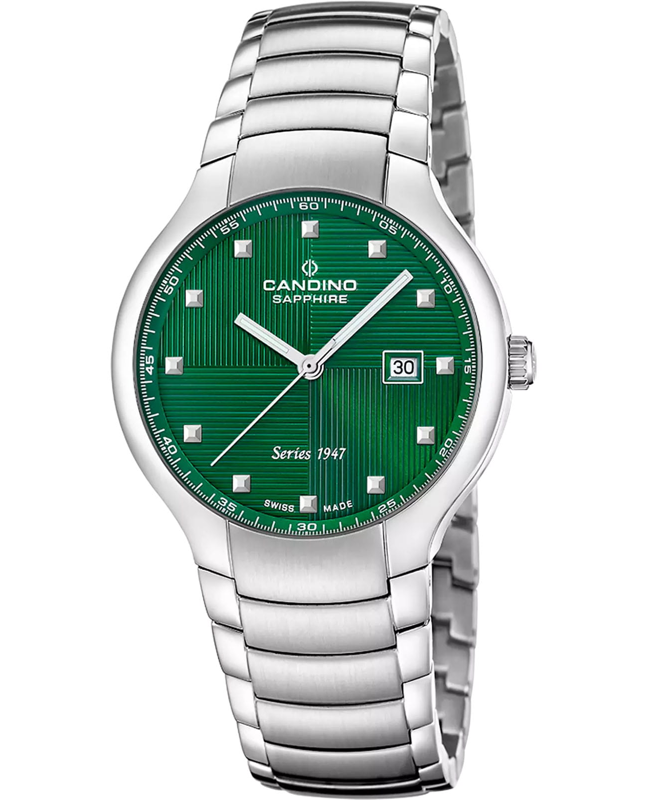 Мужские кварцевые часы Candino — это сочетание классического дизайна и швейцарского качества. Корпус диаметром 40 мм и толщиной 9,3 мм выполнен из нержавеющей стали. Циферблат зелёного цвета оформлен индексами и стрелками. Окошко даты расположено в положении 3 часов. Циферблат защищён сапфировым стекломСапфировое стеклоПрочный и надёжный материал из кристалла сапфира синтетического происхождения, характеризующийся особой твёрдостью и устойчивостью к царапинам и повреждениям., устойчивым к царапинам. Механизм — кварцевый калибр Ronda 705, произведённый в Швейцарии. Часы оснащены стальным браслетом с застёжкой «бабочка» с кнопкамиЗастёжка "бабочка"Такой вид застёжки дополняется предохранителями, помогающими избежать случайного раскрытия браслета. Обладают изящным исполнением. . Водонепроницаемость 100 м позволяет использовать часы в повседневных условиях. Гарантия — 2 года. Идеальный выбор для тех, кто ценит стиль, точность и надёжность.