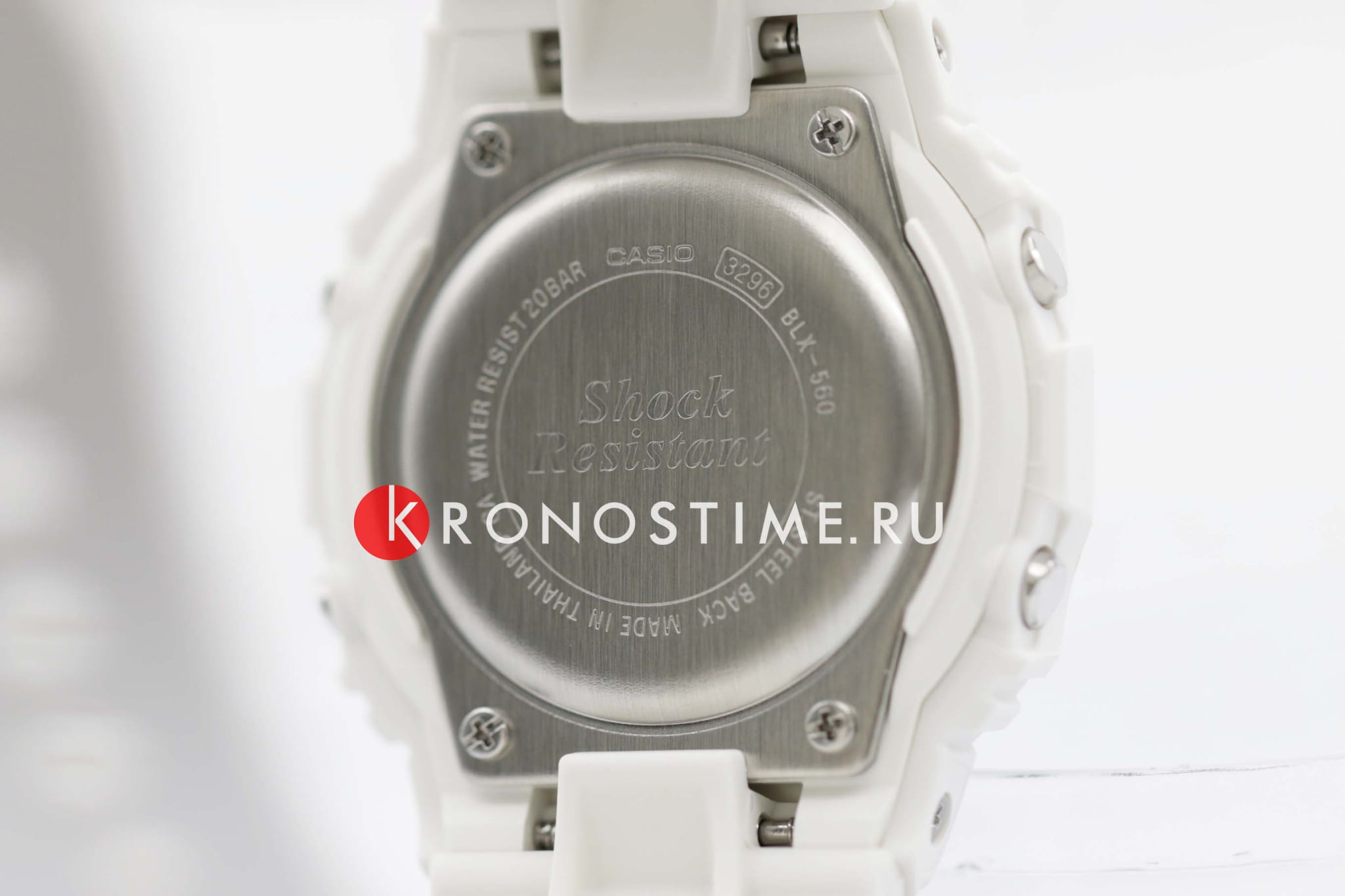 Женские японские часы Casio Baby-G BLX-560-7E из коллекции Baby-G представляют собой аксессуар для любительниц сёрфинга и тёплого моря. Лаконичное белое исполнение сразу влюбляет в себя, характерным элементом стал узнаваемый 8-угольный корпус, отдающий должное первым моделям Casio. Модель серии G-Lide оснащена полезным функционалом, позволяющим вам выбрать оптимальное время для сёрфинга, этому способствуют отображение фаз луны и график приливов и отливов. Противоударный корпусУдаропрочный корпусМеханизм заключён в корпус, выполненный из современных материалов, устойчивых к ударам, механическим повреждениям и падению с высоты: инновационный пластик, карбон, нержавеющая сталь, титан. и мягкий ремешок выполнены из пластика, что позволяет не бояться случайных ударов и падения часов. Японский кварцевый калибр с абсолютной точностью хода. Батарейка рассчитана на 3 года службы. Водостойкость до 20 бар. Электролюминесцентная подсветкаЭлектролюминесцентная подсветкаЭлектролюминесцентная панель устанавливается под ЖК-экраном часов, при нажатии кнопки электричество преобразуется в свет за счёт подачи напряжения на атомы фосфора, такой тип подсветки позволяет освещать весь циферблат. циферблата. СекундомерСекундомерСекундоме́р — прибор, способный измерять интервалы времени с точностью до долей секунды., будильникБудильникБуди́льник — часы, в заданный момент времени подающие звуковой, световой и/или в редких случаях другой сигнал., вечный календарьВечный календарьКлассическое часовое усложнение, представляющее собой календарь, рассчитанный на несколько лет вперёд (стандартно – до 2099 года). Определяет текущую дату, день недели, месяц., таймер, мировое времяМировое время Полезное часовое усложнение, отображающее время в основных городах и известных областях по всему миру, оно связано с часовыми поясами, удобно для путешественников и бизнесменов. - 48 городов.