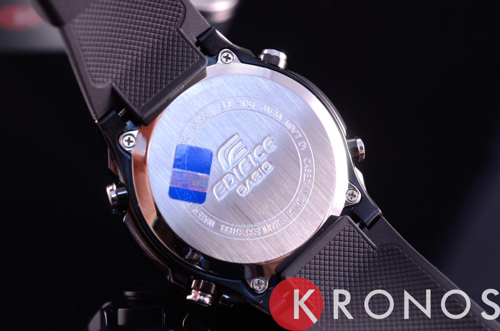 Стильный мужские наручные часы Casio Edifice надежные и практичные. Автоматическая электролюминесцентная подсветка. Благодаря электролюминесцентной панели, обеспечивающей равномерное освещение всего циферблата, облегчается считывание данных. При наклоне часов в сторону лица для считывания функция автоподсветки обеспечивает автоматическое включение электролюминесцентной подсветки. Отображение текущего времени в основных городах и регионах мира. Секундомер с точностью показаний 1/100 сек и максимальным временем измерения - 100 час. Таймер обратного отсчета. Ежедневный будильник со звуковым сигналом. Автоматический календарь. Минеральное стекло устойчивое к возникновению царапин. Корпус из нержавеющей стали с IP покрытием черного цвета. Ремешок из полимерного пластика. Натуральный полимерный материал является идеальным для изготовления ремешка благодаря своей чрезвычайной прочности и гибкости.