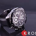 Кварцевый японский механизм Miyota. Точность хода не хуже -10 +15 сек./в месяц. Часы оснащены функцией хронографа, с точностью 1/10с и временем измерения 1ч. Циферблат черного цвета с контрастными элементами дизайна. Флюорисцентное напыление на стрелках и дисплее часов позволяет отчетливее видеть каждую цифру. Корпус выполнен из нержавеющей стали.