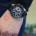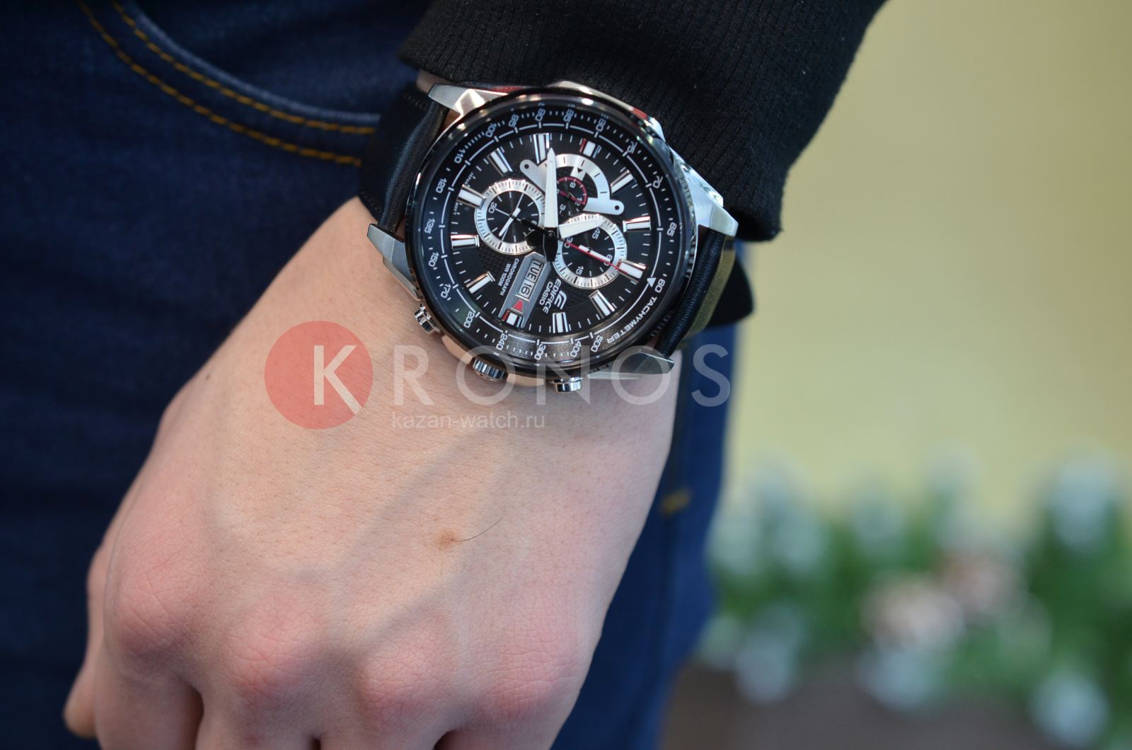 Стильный, мужские наручные часы Casio Edifice надежные и практичные. Кварцевый японский механизм Miyota. Точность хода не хуже -10 +15 сек./в месяц. Часы оснащены функцией хронографа, с точностью 1/10с и временем измерения 1ч. Циферблат черного цвета с контрастными элементами дизайна. Стрелки и индексы с светонакопительным нанесением. Корпус выполнены из нержавеющей стали. Безель с IP покрытием черного цвета. Ремешок из натуральной кожи черного цвета. Минеральное стекло устойчиво к появлению царапин. Водонепроницаемость 100М. В часах можно плавать. Степень водонепроницаемости не является величиной, эквивалентной функциональной рабочей глубине.