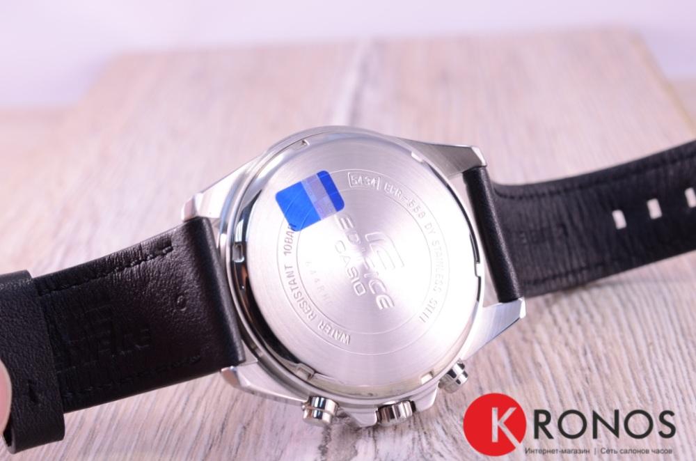 Мужские классические наручные часы Casio Edifice надежные и практичные. Кварцевый японский механизм Miyota. Точность хода не хуже -10 +15 сек./в месяц. Часы оснащены функцией хронографа. Циферблат черного цвета с контрастными индексами. Стрелки и индексы с светонакопительным нанесением. Корпус выполнен из нержавеющей стали. Ремешок из натуральной кожи, черного цвета. Минеральное стекло устойчиво к появлению царапин Водонепроницаемость 100М. В часах можно плавать. Степень водонепроницаемости не является величиной, эквивалентной функциональной рабочей глубине.