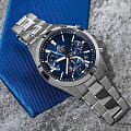Синий циферблат с оригинальным размещением счётчиков имеет красные акценты, такой спортивный дизайн будет актуален в любой ситуации. Это наручные часы на солнечной батарее, основанные на технологии . Они дополнены браслетом из нержавеющей стали 316L с предохранительной застёжкой, обеспечивающей надёжную фиксацию на запястье. Кварцевый механизм с точностью хода -/+15 секунд в месяц. Сапфировое стекло. Люминесцентная подсветкаЛюминесцентное покрытиеПозволяет считывать показания времени в темноте. Производители наносят на стрелки, часовые индексы, безель или поверхность циферблата светонакопительный состав, дающий холодное свечение. стрелок. Апертура даты, функция хронографаХронографФункция позволяет измерять отрезки времени с особой точностью: часы, минуты, секунды. Верным признаком хронографа является наличие на циферблате 3 дополнительных окошек-счётчиков.. Габариты: 49,5 x 44,2 x 11,6 мм.