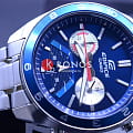 Японские мужские часы-хронографХронографФункция позволяет измерять отрезки времени с особой точностью: часы, минуты, секунды. Верным признаком хронографа является наличие на циферблате 3 дополнительных окошек-счётчиков. Casio Edifice EFV-590D-2AVUDF. Минеральное стеклоМинеральное стеклоМинеральное стекло представляет собой искусственно выращенный минерал кварца. Такое стекло отличается особой устойчивостью к повреждениям и царапинам. Уступает по некоторым качествам сапфировому стеклу. устойчивое к появлению царапин, обладающее высокой прозрачностью. Корпус часов изготовлен из нержавеющей стали. БезельБезельВнешний ободок, закрепляющий стекло. В спортивных часах так называется поворотное кольцо с делениями на циферблате, выполняет роль таймера – замеряет отрезки времени на шкале. Неподвижный безель – элемент декора. Однонаправленно вращающийся безель на дайверских часах позволяет фиксировать моменты погружения и выныривания на поверхность. из стали с IP-покрытиемIP-покрытиеМетод ионного напыления. Демонстрирует повышенную устойчивость к истиранию, окислению и химическим веществам. Под воздействием высокого давления и температуры около 1500°C молекулы металла надёжно соединяются с частицами корпуса часов.. Светодиодная автоподсветка NeobriteПодсветка NeobriteИспользование светонакопительных составов на основе сульфида цинка или алюмината стронция, яркий свет можно наблюдать на протяжении 6-10 часов после «зарядки» часов около источника света. - при повороте часов в сторону лица подсветка дисплея осуществляется автоматически. Настраиваемое послесвечение 1,5 или 3сек. СекундомерСекундомерСекундоме́р — прибор, способный измерять интервалы времени с точностью до долей секунды. с точностью измерения 1/100 секунды и измерением до 23 часов 59 минут 59,99 cек. ТаймерТаймерОтсчитывает секунды в обратном направлении в заданном интервале времени. обратного отсчета (диапазон времени 24 часа), автоматический календарь, 12/24 отображение времени. Класс водозащиты: 100 метров, позволит плавать, нырять и заниматься другими водными видами спорта. Стальной браслет на раскладной застёжкеРаскладная застёжкаТакой тип застёжки используется только на браслетах из металла. Она никогда не раскрывается полностью, происходит разделение на 2 и более частей. Раскладывающая застёжка снизит вероятность потери часов к минимуму..