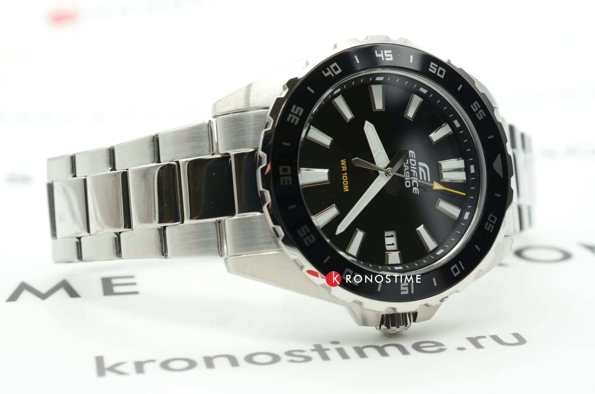 Серебристо-чёрная модель наделена элементами дайверского дизайна, повторяя внешний облик механических часов для дайвинга 1950-х годов, в глаза бросается массивный однонаправленно вращающийся безельБезельВнешний ободок, закрепляющий стекло. В спортивных часах так называется поворотное кольцо с делениями на циферблате, выполняет роль таймера – замеряет отрезки времени на шкале. Неподвижный безель – элемент декора. Однонаправленно вращающийся безель на дайверских часах позволяет фиксировать моменты погружения и выныривания на поверхность. с фигурным краем, крупные стрелки и часовые индексы. Секундная стрелка дополнена жёлтым наконечником, что обеспечивает превосходную читаемость показаний с циферблата. Кварцевый японский механизм с точностью хода часов +/- 20 секунд в месяц. Батарейка рассчитана на 3 года работы. Люминесцентная подсветка NeobriteПодсветка NeobriteИспользование светонакопительных составов на основе сульфида цинка или алюмината стронция, яркий свет можно наблюдать на протяжении 6-10 часов после «зарядки» часов около источника света.. Водонепроницаемость при давлении до 10 бар. Ударопрочный корпусУдаропрочный корпусМеханизм заключён в корпус, выполненный из современных материалов, устойчивых к ударам, механическим повреждениям и падению с высоты: инновационный пластик, карбон, нержавеющая сталь, титан. и браслет из нержавеющей стали 316L. Чёрное IP-покрытиеIP-покрытиеМетод ионного напыления. Демонстрирует повышенную устойчивость к истиранию, окислению и химическим веществам. Под воздействием высокого давления и температуры около 1500°C молекулы металла надёжно соединяются с частицами корпуса часов.. Минеральное стекло. Окошко индикации числа. Габариты: 42 x 37,8 x 9,4 мм.