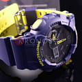 Ударопрочные японские наручные мужские часы в яркой сине-желтой расцветке. Круглый корпус и браслет часов выполнены из высокоустойчивого полимерного пластика.  Водонепроницаемость 20 ATM. Минеральное стекло, устойчивое к появлению царапин. В часах присутствуют такие дополнительные функции как защита от магнитных полей, секундомер, таймер обратного отсчета, автоподсветка, мировое время, вечный календарь и будильник (5 установок).