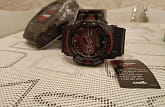 Массивный циферблат Big Cases Series™ с ярко-красными элементами великолепно смотрится с чёрным ремешком, сделанным из полимерного материала. Наручные часы имеют пластиковый противоударный корпусУдаропрочный корпусМеханизм заключён в корпус, выполненный из современных материалов, устойчивых к ударам, механическим повреждениям и падению с высоты: инновационный пластик, карбон, нержавеющая сталь, титан., благодаря которому можно не бояться повреждений или случайного падения. Интересной деталью стало колесо прокрутки, с помощью которого легко настраивать время, таймер, будильник. Японский кварцевый механизм получает питание от батарейки, срок службы которой составляет 3 года. Водонепроницаемость 20 бар. Устойчивость к влиянию магнитных полей. Минеральное стекло. Светодиодная подсветкаСветодиодная подсветкаСветодиодная или LED-подсветка обеспечивает появление яркого холодного свечения за счёт LED-элементов - маленьких лампочек. Они потребляют минимальное количество энергии, чаще всего можно встретить 1 светодиод, в нижней части циферблата. оранжевого цвета. Секундомер, мировое времяМировое время Полезное часовое усложнение, отображающее время в основных городах и известных областях по всему миру, оно связано с часовыми поясами, удобно для путешественников и бизнесменов. , календарь до 2099 года, хронографХронографФункция позволяет измерять отрезки времени с особой точностью: часы, минуты, секунды. Верным признаком хронографа является наличие на циферблате 3 дополнительных окошек-счётчиков., UTCUTCВсемирное кординационное время, не имеющее привязки к географическому положению Гринвича, основывается на атомном отсчёте времени. Регулировка времени осуществляется более точно, чем устаревшее GMT.