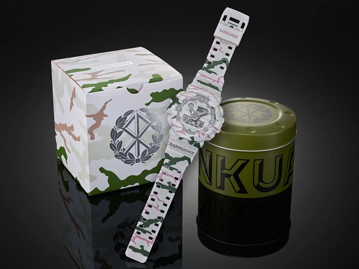 35-летний юбилей не может пройти незаметно. Особенно для бренда G-Shock.Sankuanz — это такой китайский бренд одежды. Основал его дизайнер Shanguan Zhe в 2008. Теперь у него своя команда, которая путешествует по Китаю с целью исследования процессов традиционного текстильного искусства. Задняя крышка с брендом Sankuanz.