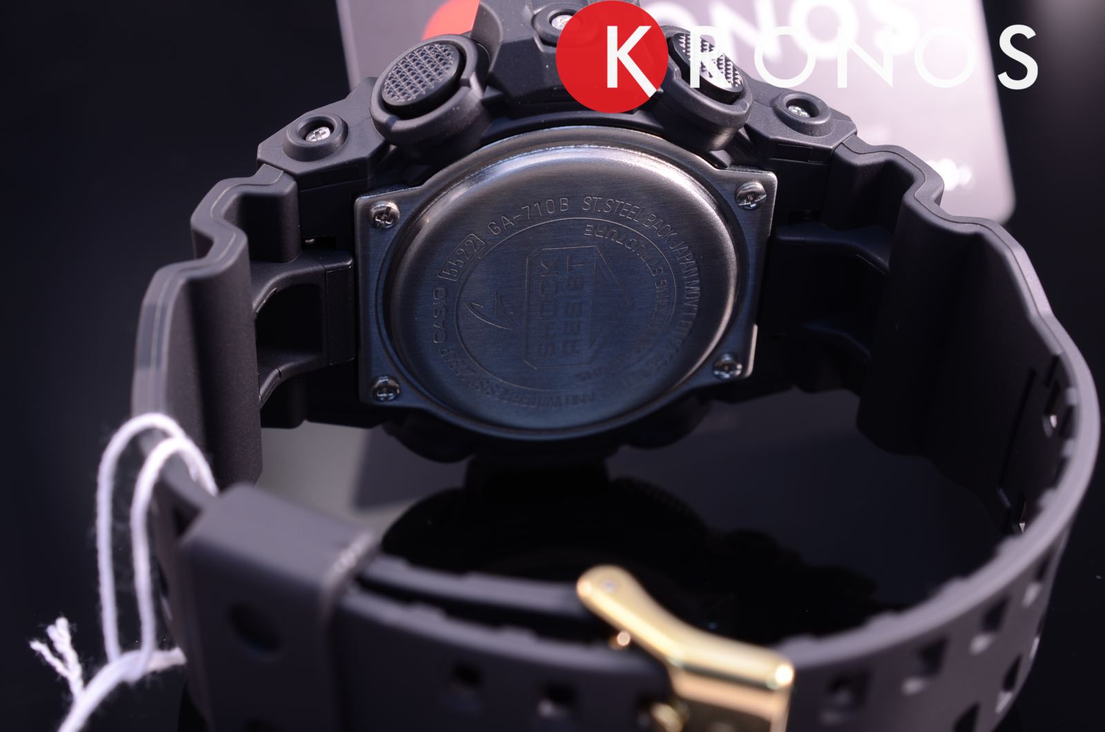 Стильный аксессуар чёрного цвета имеет привлекательные акценты золотистого цвета, что смягчает его брутальный вид. Часы с крупными стрелками и метками обеспечивают идеальную читаемость показателей времени, кнопка подсветки для удобства вынесена в нижнюю часть ударопрочного корпусаУдаропрочный корпусМеханизм заключён в корпус, выполненный из современных материалов, устойчивых к ударам, механическим повреждениям и падению с высоты: инновационный пластик, карбон, нержавеющая сталь, титан.. Он, как и ремешок, выполнен из полимерного материала, выдерживающим удары и падения. Японский кварцевый механизм получает питание от батарейки, отличающейся повышенным сроком службы до 5 лет. Закаленное минеральное стекло. Яркая светодиодная подсветкаСветодиодная подсветкаСветодиодная или LED-подсветка обеспечивает появление яркого холодного свечения за счёт LED-элементов - маленьких лампочек. Они потребляют минимальное количество энергии, чаще всего можно встретить 1 светодиод, в нижней части циферблата.. Водозащита 200 метров. Функция перемещения стрелок для быстрого доступа к данным малых счётчиков. Таймер обратного отсчёта, UTCUTCВсемирное кординационное время, не имеющее привязки к географическому положению Гринвича, основывается на атомном отсчёте времени. Регулировка времени осуществляется более точно, чем устаревшее GMT.