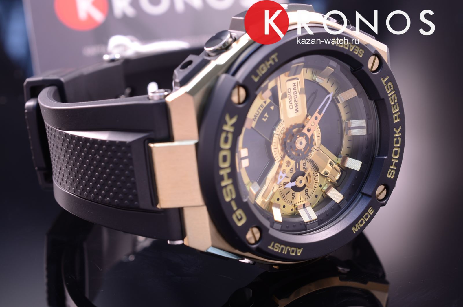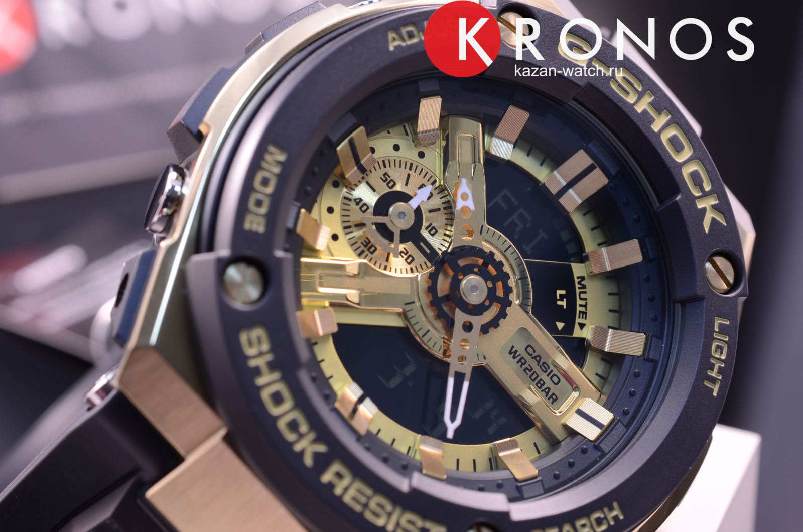 Компания Casio выпустила новые часы G-SHOCK G-STEEL в более компактном формате.Часы GST-400G доступны в черно-золотом цвете.