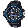 Новые часы CASIO Gulfmaster GWN-1000 - прочность G-Shock фунциональные возможности ProTrek. Работают от солнечной батареи.Фаза луны, график отливов и приливов. Радио синхронизация времени. Электрическая светодиодная подсветка с функцией автоматической подсветки при наклоне часов. Барометр (260 / 1.100 hPa). Термометр (-10°C / +60°C). Встроенный датчик давления определяет изменения в атмосферном давлении и преобразовывает полученные результаты в абсолютную высоту до 10 000 м. Встроенный цифровой компас определяет северный магнитный полюс.  Функция секундомера. Таймер обратного отсчета. 5 ежедневных будильников. Автоматический календарь. Функция мирового времени. Отображение времени в 12-часовом или 24-часовом формате. Особая ударопрочная конструкция защищает от ударов и вибрации. Минеральное стекло устойчивое к возникновению царапин. Ремешок из полимерного материала. Водонепроницаемость (20 Бар).