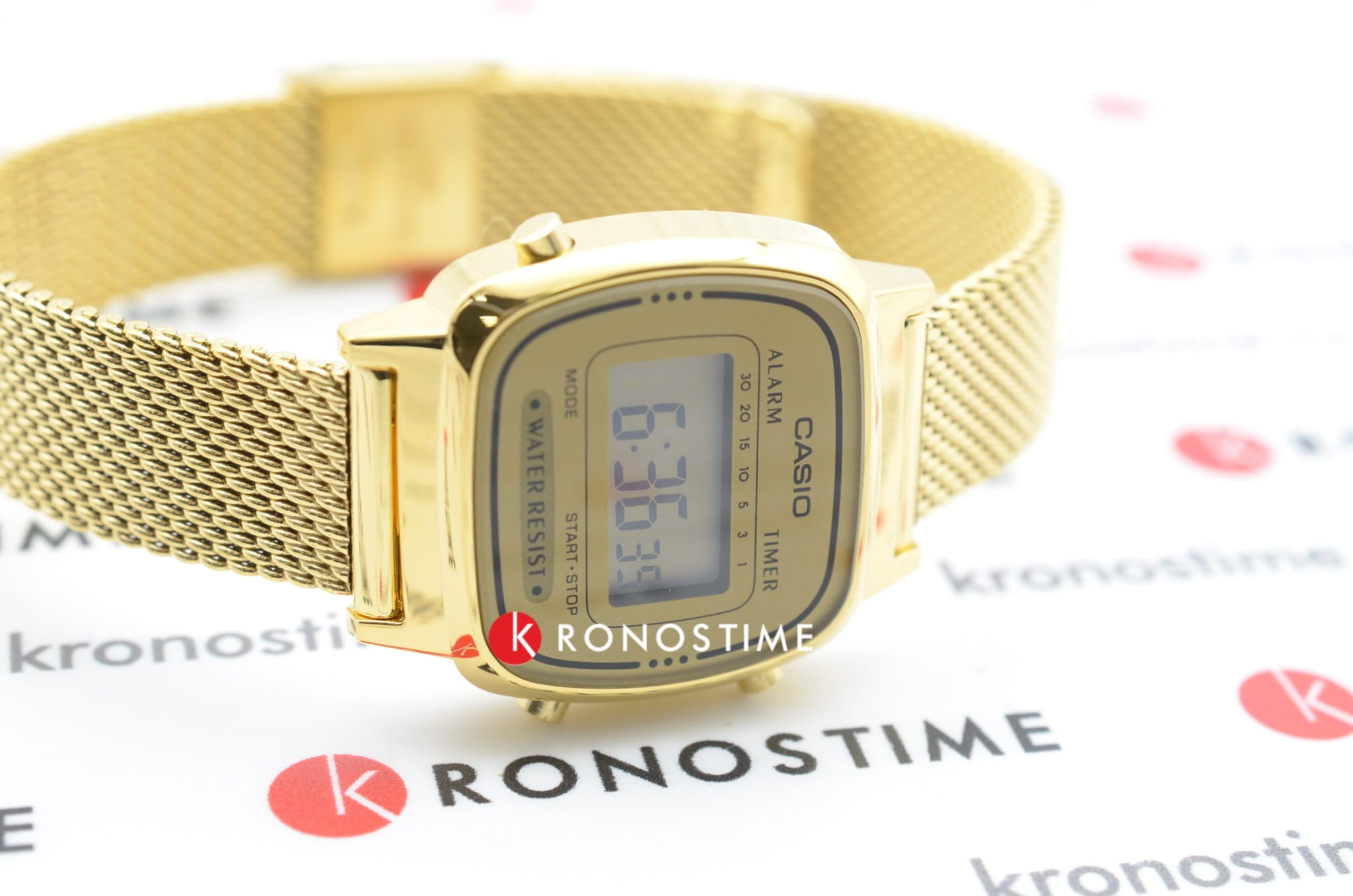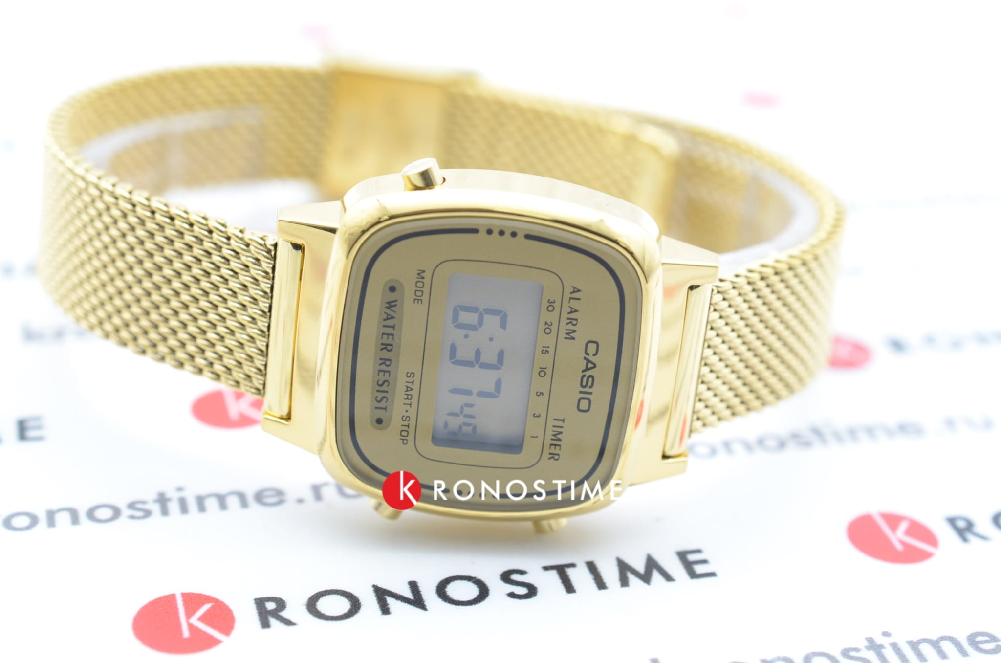 Спортивные женские наручные часы с электронным циферблатом. Оснащены функциями: секундомера, таймера, календаря и подсветки. Корпус - Нержавеющая сталь, PVD покрытие; Стекло - Пластик; Водозащита - 30 м. (WR 30); Материал ремешка - Нержавеющая сталь, PVD покрытие; Цвет ремешка -Желтый; Цвет циферблата - Lcd.