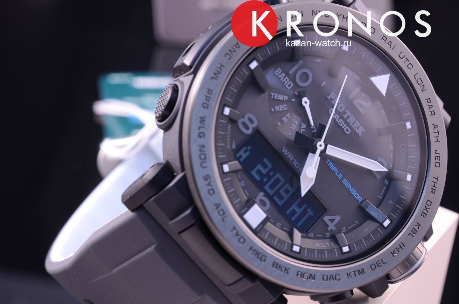 Питание от солнечной энергии -солнечные батарейки большой мощности, индикатор заряда батареи. Функция автоматического сохранения энергии. Время работы аккумулятора без подзарядки приблизительно 7 месяцев, при включенной функции сохранения энергии приблизительно 25 месяцев. Модуль часов рассчитан на работу при низких температурах до -10°С/14°F. Светонакопительное покрытие необрит продолжает светиться в темноте даже после непродолжительного пребывания на свету. Функция автоматической коррекции положения стрелок проверяет положение стрелок каждый час и корректирует его в случае необходимости. Мировое время –29 часовых поясов, всемирное координированное время . Технология Triple Sensor позволяет точно и легко определять сторону света, температуру и атмосферное давление. Термометр ,встроенный цифровой компас,высотомер - встроенный датчик барометрического давления . Хранение до 30 записей о высотных точках рельефа местности - измеренной абсолютной высоты, даты и времени. Система Smart Access с помощью электронной заводной головки обеспечивает простой и удобный доступ ко всем важным функциям часов. Нажатие или поворот заводной головки позволяет переключаться между различными режимами и активировать будильник, таймер, секундомер, а также настраивать функцию мирового времени. Секундомер с точностью показаний 1/100с и временем измерения 24ч. Сплит-хронограф. Таймер обратного отсчета от 1мин до 1ч. Функция перемещения стрелок. Функция отключения/включения звука. Завинчивающаяся заводная головка с защитой. Люминесцентная внутренняя поверхность ремешка.