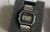 Модель A-159WA-N1DF от Casio из коллекции Vintage воплощает элегантность ретро-дизайна, дополненную современными функциями. Прямоугольный корпус из полимера и браслет из нержавеющей стали придают часам стильный и утонченный вид.