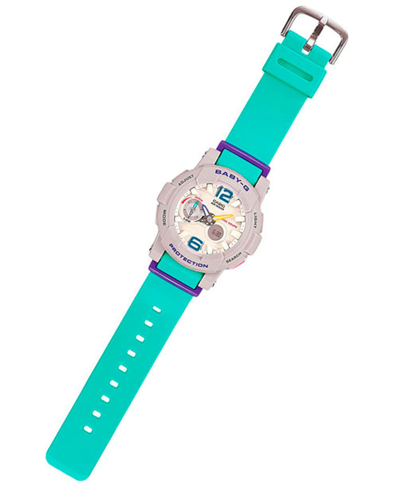 Японские женские часы-хронографХронографФункция позволяет измерять отрезки времени с особой точностью: часы, минуты, секунды. Верным признаком хронографа является наличие на циферблате 3 дополнительных окошек-счётчиков. Casio Baby-G BGA-180-3BDR из коллекции Baby-G. Минеральное стеклоМинеральное стеклоМинеральное стекло представляет собой искусственно выращенный минерал кварца. Такое стекло отличается особой устойчивостью к повреждениям и царапинам. Уступает по некоторым качествам сапфировому стеклу. устойчивое к появлению царапин, обладающее высокой прозрачностью. Корпус часов изготовлен из полимерного материала. Светодиодная подсветкаСветодиодная подсветкаСветодиодная или LED-подсветка обеспечивает появление яркого холодного свечения за счёт LED-элементов - маленьких лампочек. Они потребляют минимальное количество энергии, чаще всего можно встретить 1 светодиод, в нижней части циферблата. с функцией послесвечения. Ударопрочный корпусУдаропрочный корпусМеханизм заключён в корпус, выполненный из современных материалов, устойчивых к ударам, механическим повреждениям и падению с высоты: инновационный пластик, карбон, нержавеющая сталь, титан. защищает механизм от ударов и вибрации. Функция Мирового времениМировое время Полезное часовое усложнение, отображающее время в основных городах и известных областях по всему миру, оно связано с часовыми поясами, удобно для путешественников и бизнесменов. и летнего времени, второй часовой пояс. СекундомерСекундомерСекундоме́р — прибор, способный измерять интервалы времени с точностью до долей секунды. с точностью измерения 1/100 секунды и измерением до 23 часов 59 минут 59,99 cек. ТаймерТаймерОтсчитывает секунды в обратном направлении в заданном интервале времени. обратного отсчета (диапазон времени 24 часа), автоматический календарь, 12/24 отображение времени. 5 ежедневных будильниковБудильникБуди́льник — часы, в заданный момент времени подающие звуковой, световой и/или в редких случаях другой сигнал.. Термометр от -10 до 60°C . Отображение возраста и фазы луны. Отображение сведений о приливах и отливах (уровень прилива на ближайшие 12 часов, и на определенную дату и время). Класс водозащиты: 100 метров, позволит плавать без погружения. Ремешок из полимерного материала на стандартной застежке.