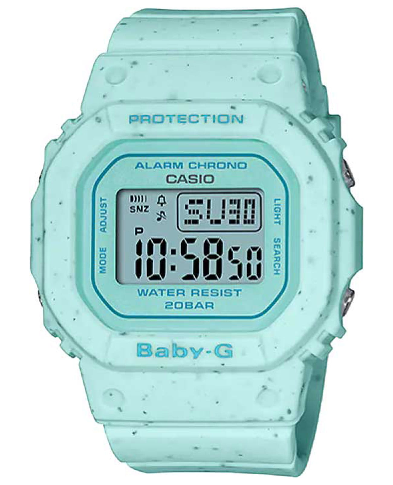 Женские противоударныеУдаропрочный корпусМеханизм заключён в корпус, выполненный из современных материалов, устойчивых к ударам, механическим повреждениям и падению с высоты: инновационный пластик, карбон, нержавеющая сталь, титан. японские часы-хронографХронографФункция позволяет измерять отрезки времени с особой точностью: часы, минуты, секунды. Верным признаком хронографа является наличие на циферблате 3 дополнительных окошек-счётчиков. Casio Baby-G BGD-560CR-2. Кварцевый механизм с высокой точностью. Класс водозащиты: 200 метров, позволит плавать, нырять и заниматься другими водными видами спорта. С широким функционалом, в который входит: таймерТаймерОтсчитывает секунды в обратном направлении в заданном интервале времени., будильникБудильникБуди́льник — часы, в заданный момент времени подающие звуковой, световой и/или в редких случаях другой сигнал., 12/24-часовое отображение времени, автоматический календарь. Электролюминесцентная подсветкаЭлектролюминесцентная подсветкаЭлектролюминесцентная панель устанавливается под ЖК-экраном часов, при нажатии кнопки электричество преобразуется в свет за счёт подачи напряжения на атомы фосфора, такой тип подсветки позволяет освещать весь циферблат. подсветка дисплея помогает считывать информацию при плохом освещении. Батарейка со сроком службы 3 года. Корпус часов изготовлен из полимерного пластика.